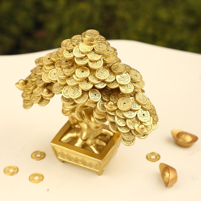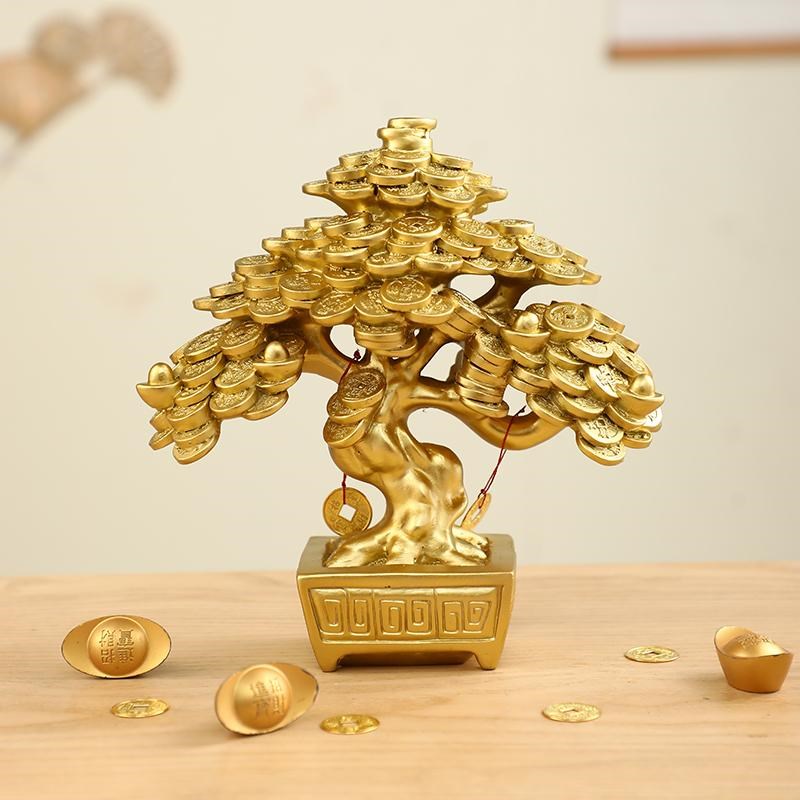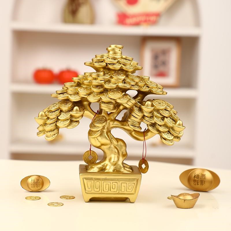 铜钱发财树招财摆件客厅柜台前台玄关摇钱树装饰乔迁W新居开业礼