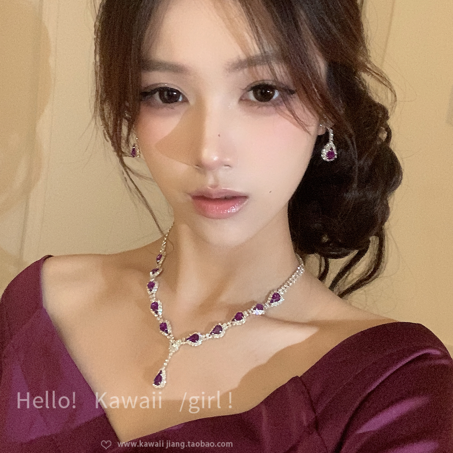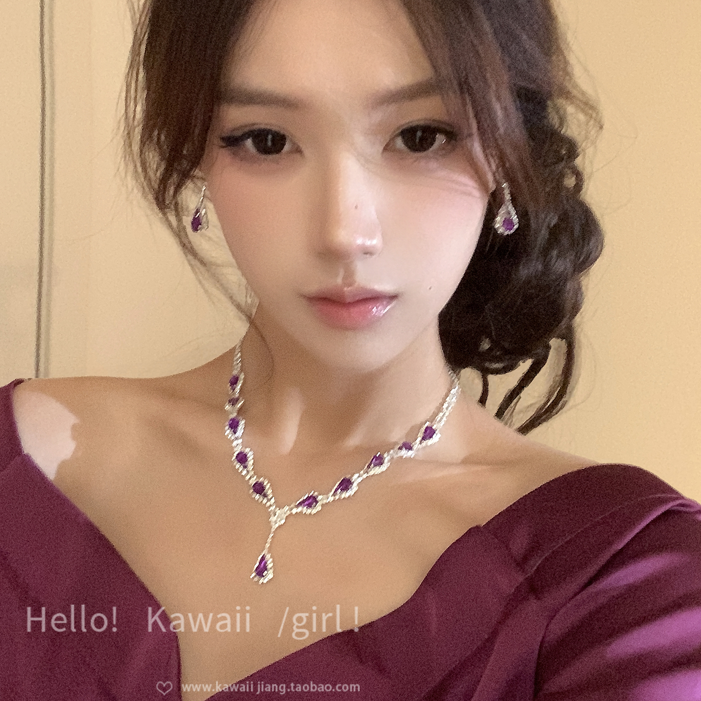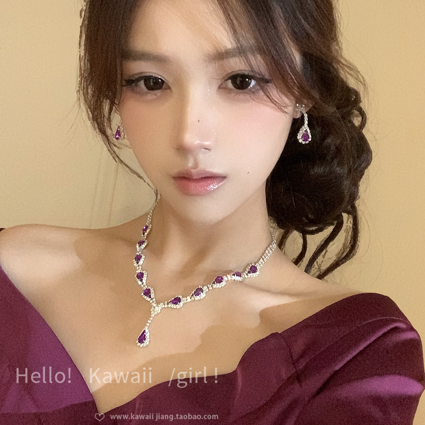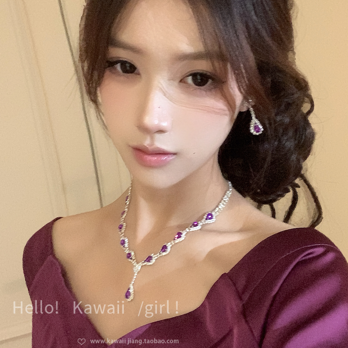 财阀千金 氛围贵气感紫色水滴项链耳环轻奢小众高级感气质锁骨链