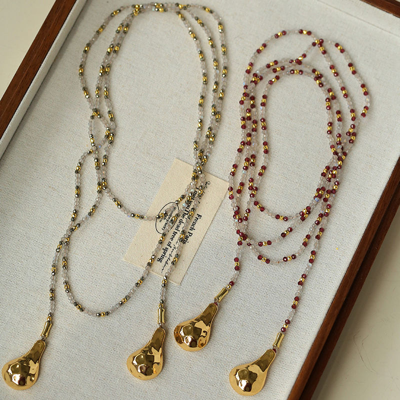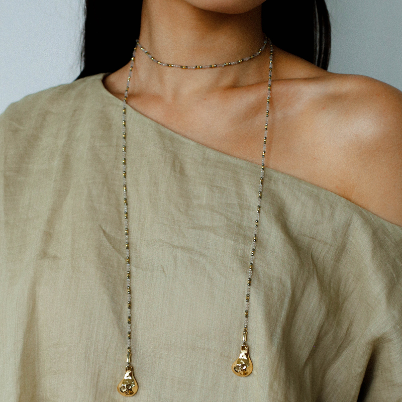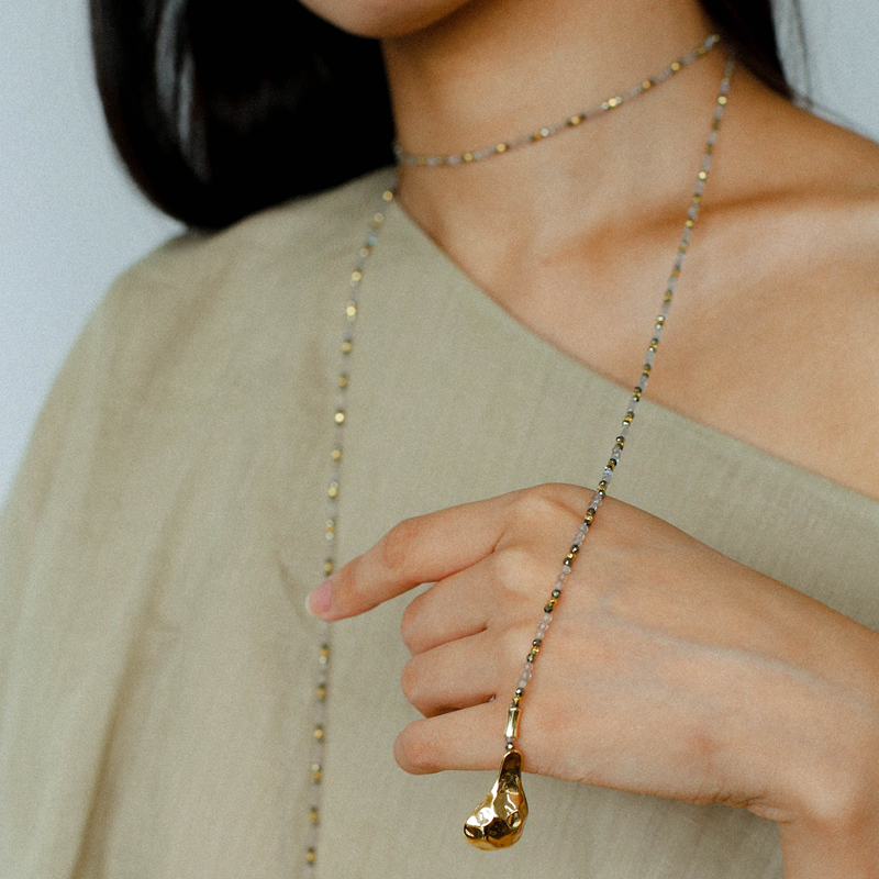 TU家小众复古天然石手工锤痕勺子项链女款设计感叠戴开放式毛衣链