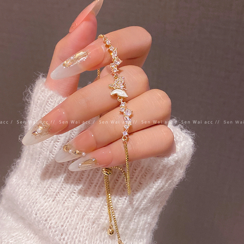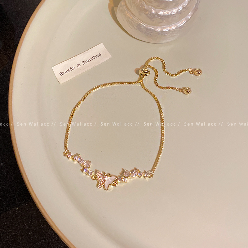 精致锆石蝴蝶手链女2025年新款甜美气质可调节抽拉式手环手饰
