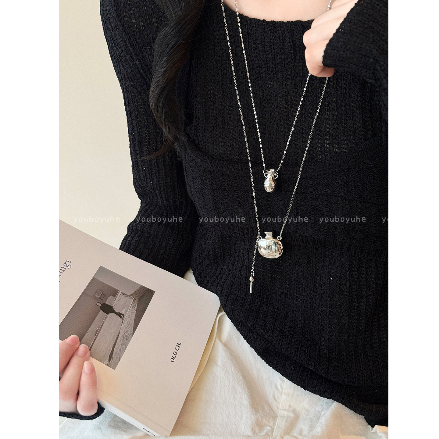 ins风银色小水壶长款吊坠项链女款高级感钛钢毛衣链韩系装饰配饰