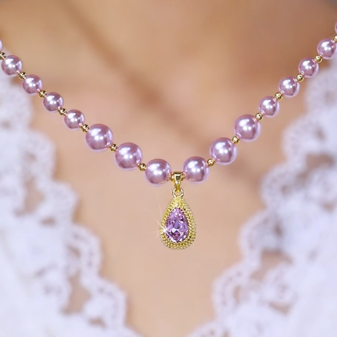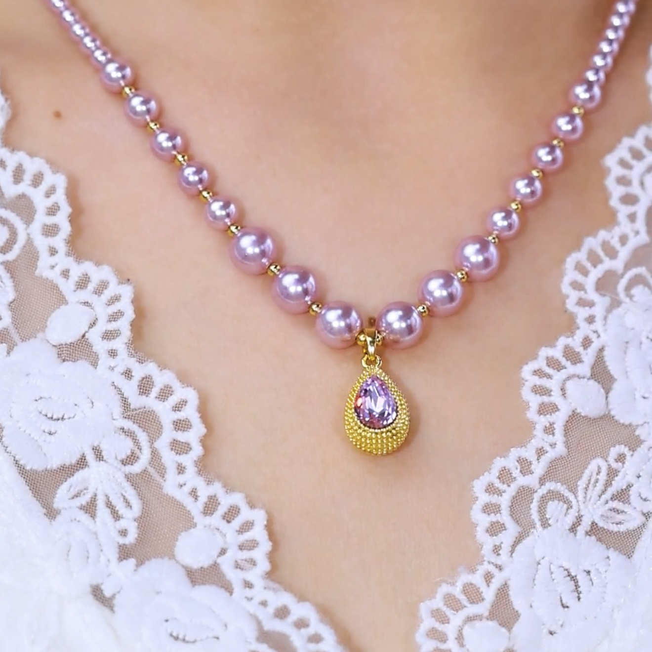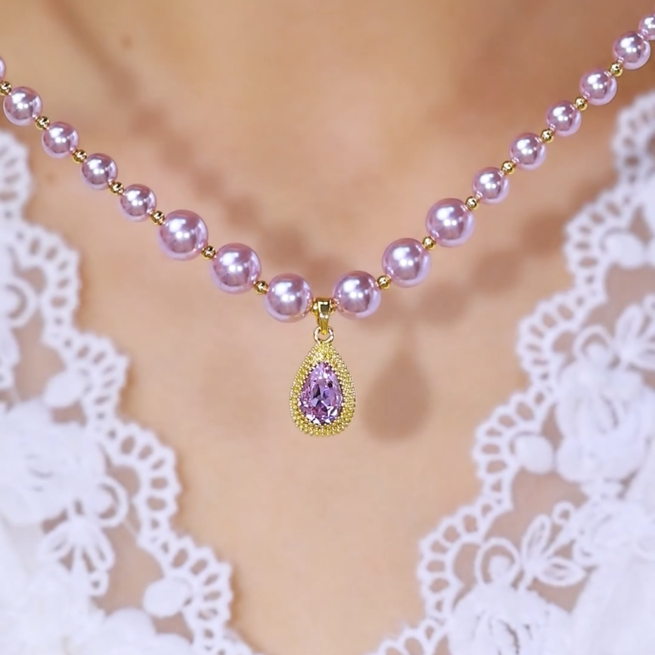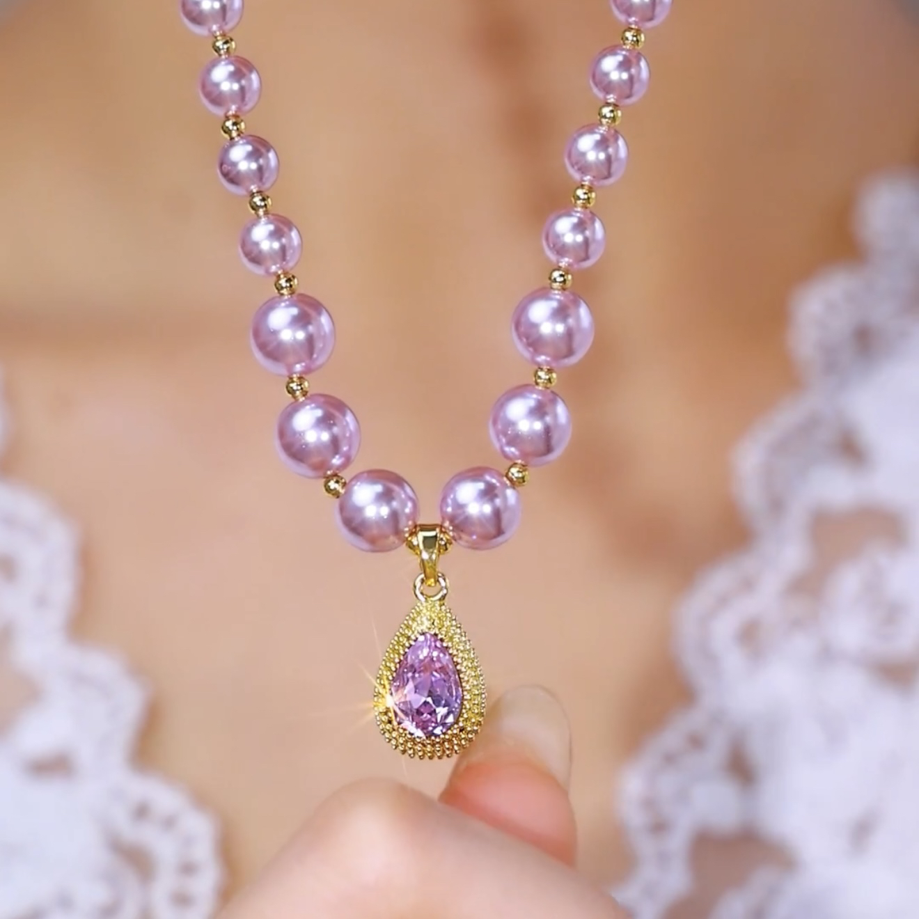 紫色水晶榴莲仿珍珠项链女轻奢高端风百搭锁骨链设计感气质毛衣链