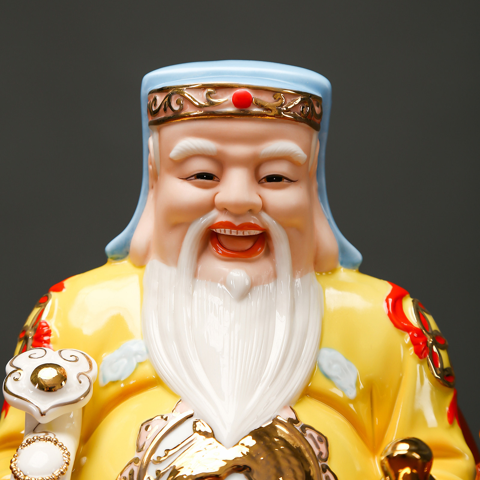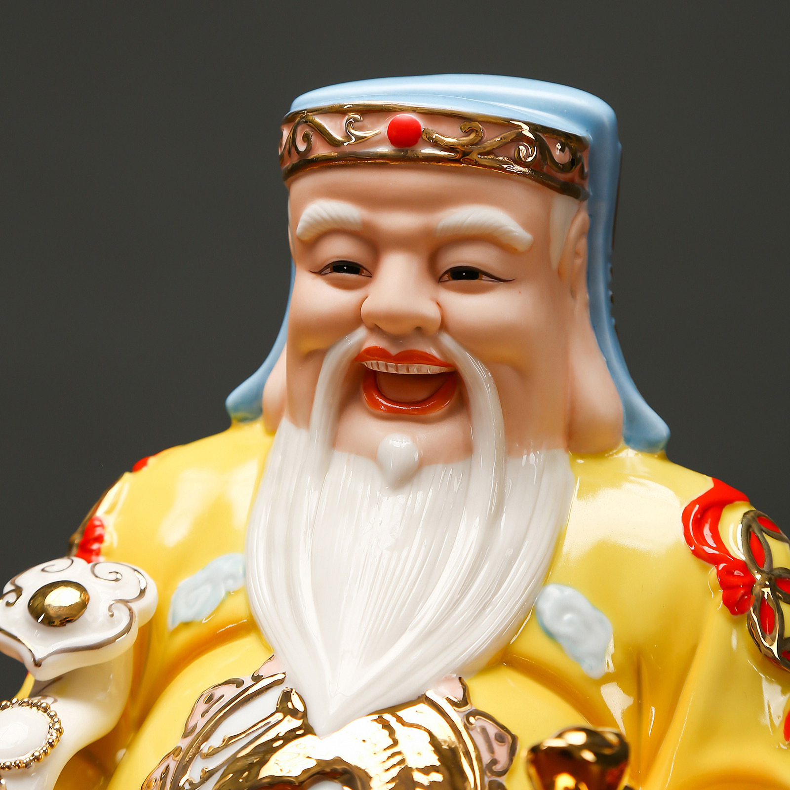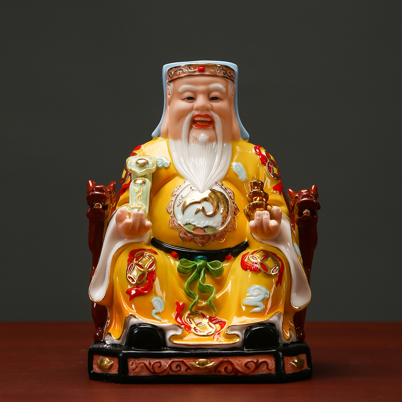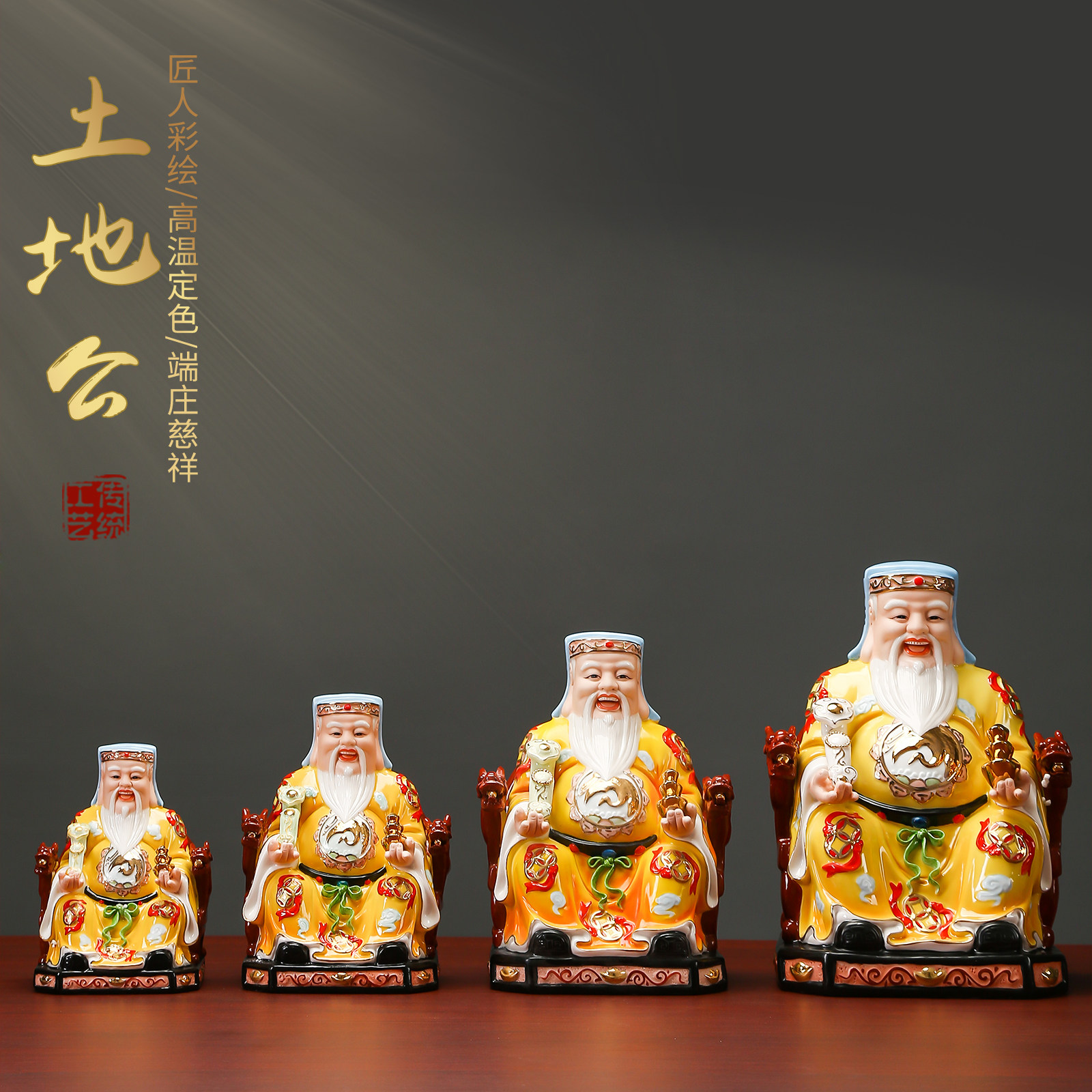 黼山堂黄色土地公神像家用客厅佛堂祠堂店铺供奉福德正神招财摆件
