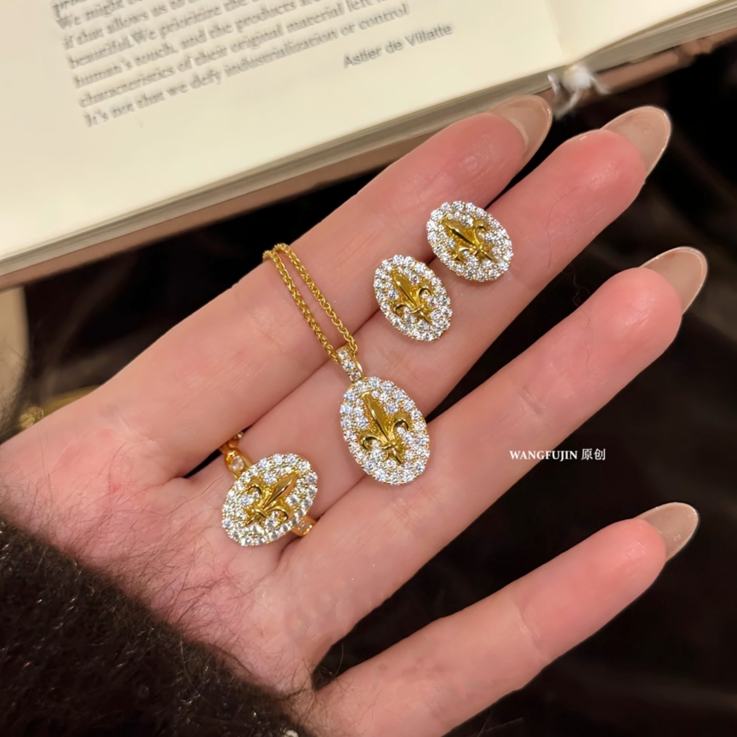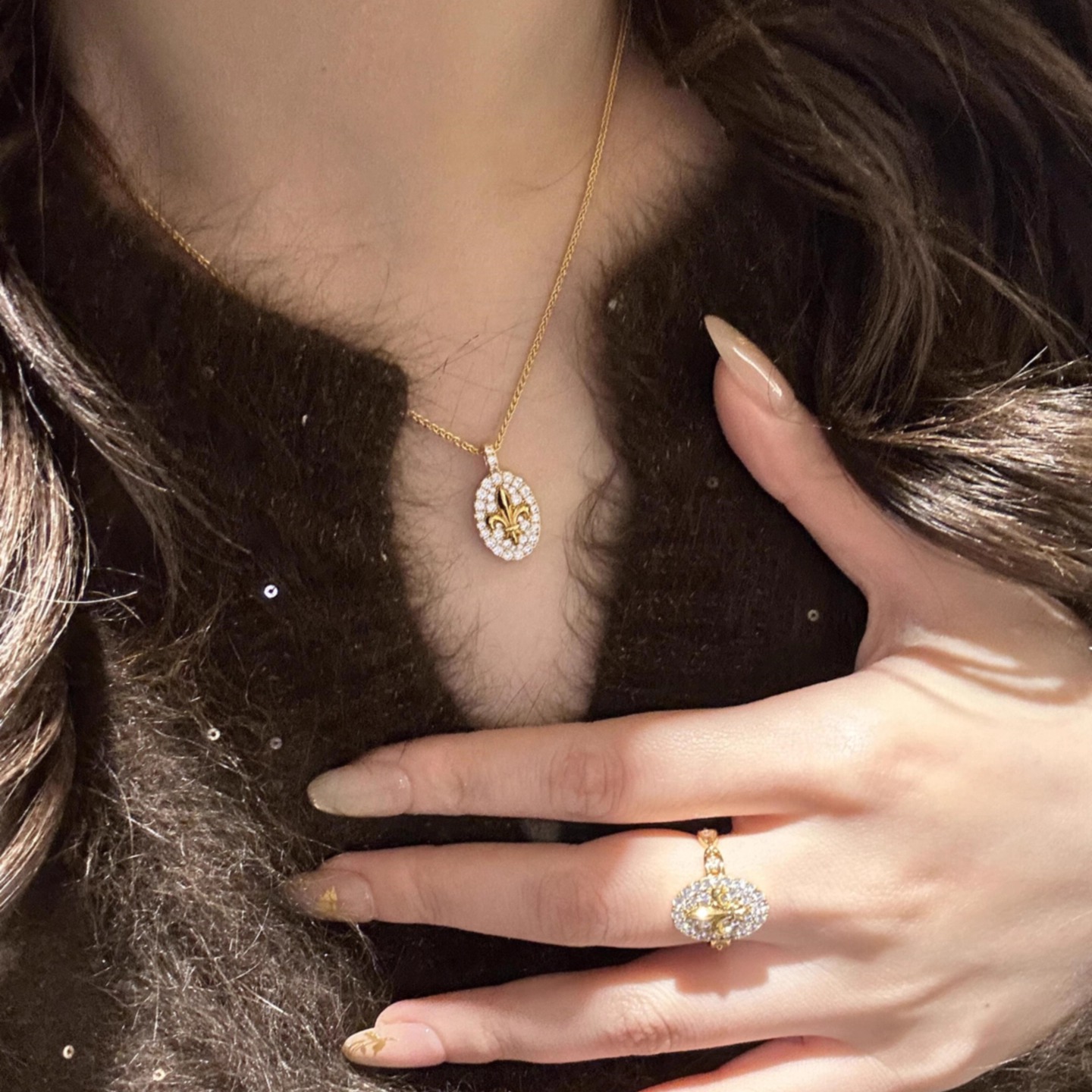 法式满天星鸢尾花项链 女中古18K金复古椭圆牌纯银满钻高级感礼物