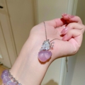 新中式10*12mm花卉蛋面天然紫色玉髓吊坠项链女925纯银冰种高级感