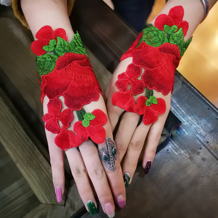 杨丽萍同款手套民族风护腕女刺绣漏指绣花手腕套四季饰品半指镂空