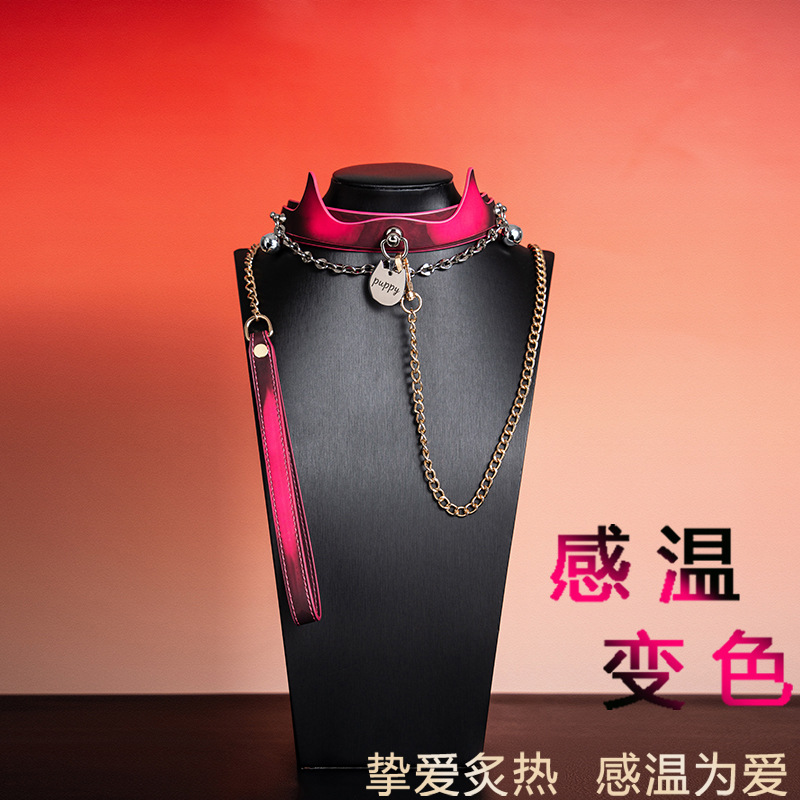 感温变色项圈choket铃铛女颈带链子puppy小圈工具皮质项链手铐