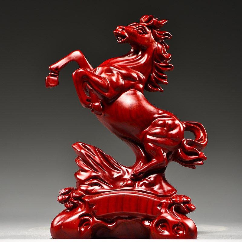 木雕红色马摆件工艺品实木马到成功招财客厅办公桌红木马木质红马