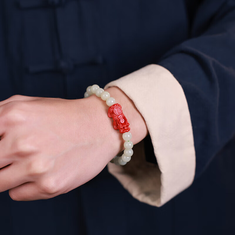 瑞兽标准附送手串辰砂SOXW款貔貅男女证书再造和田玉手链