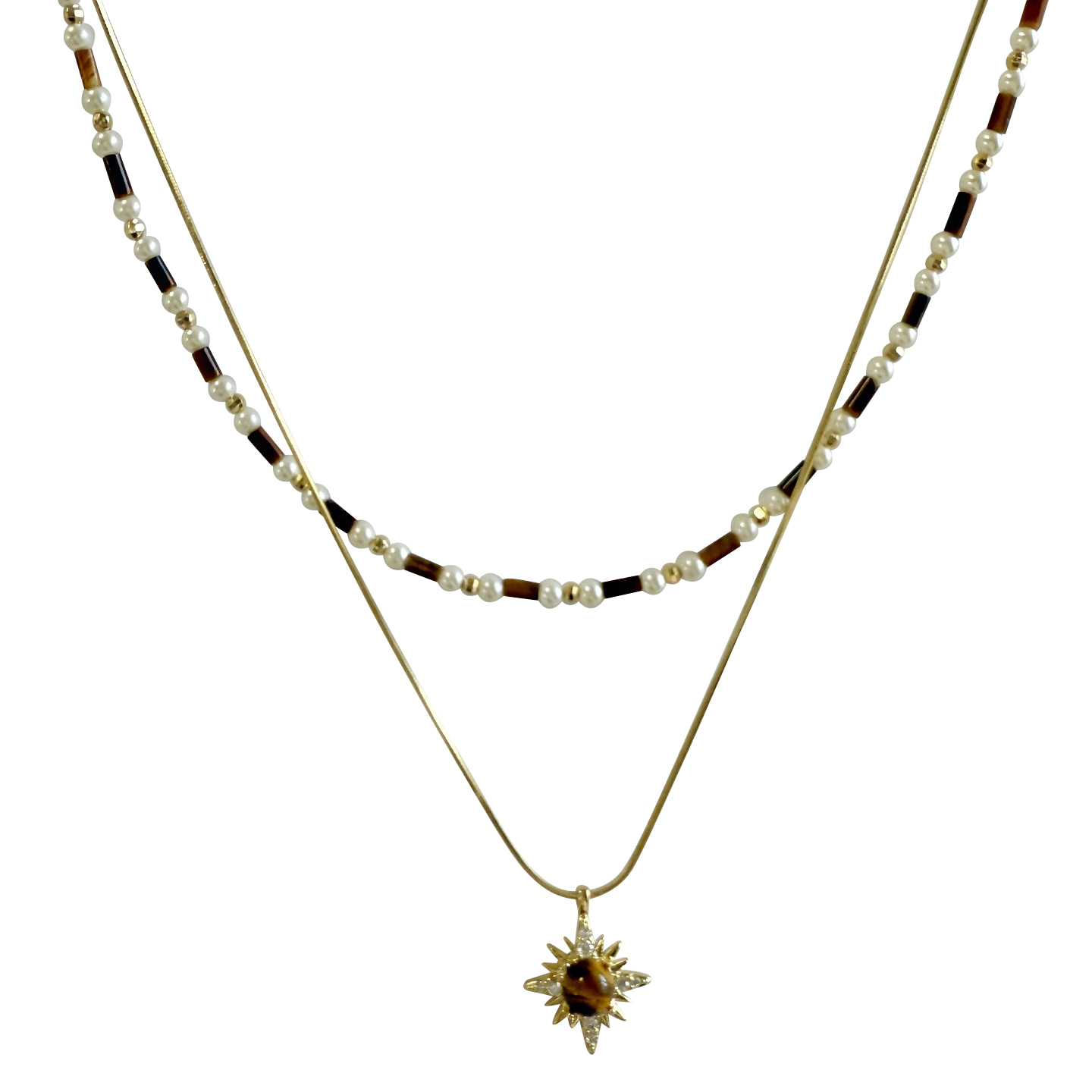 《罗德岛》复古暖金双层叠戴虎眼星芒吊坠项链高级锁骨链小众设计
