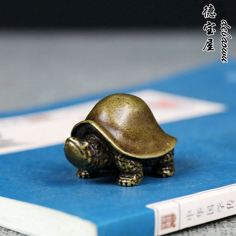 黄铜乌龟 茶宠小物件 纯铜可爱手工铜龟长寿龟盖置茶道小乌龟摆件