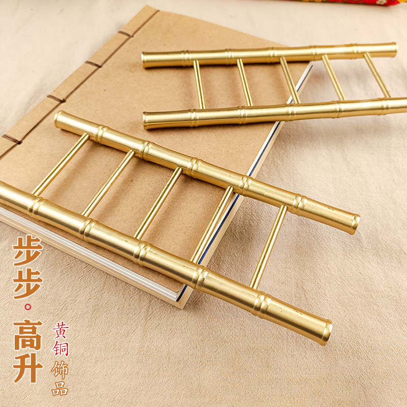 新款纯铜步步高升摆件黄铜竹节梯子办公室内节节高升工艺品装饰品