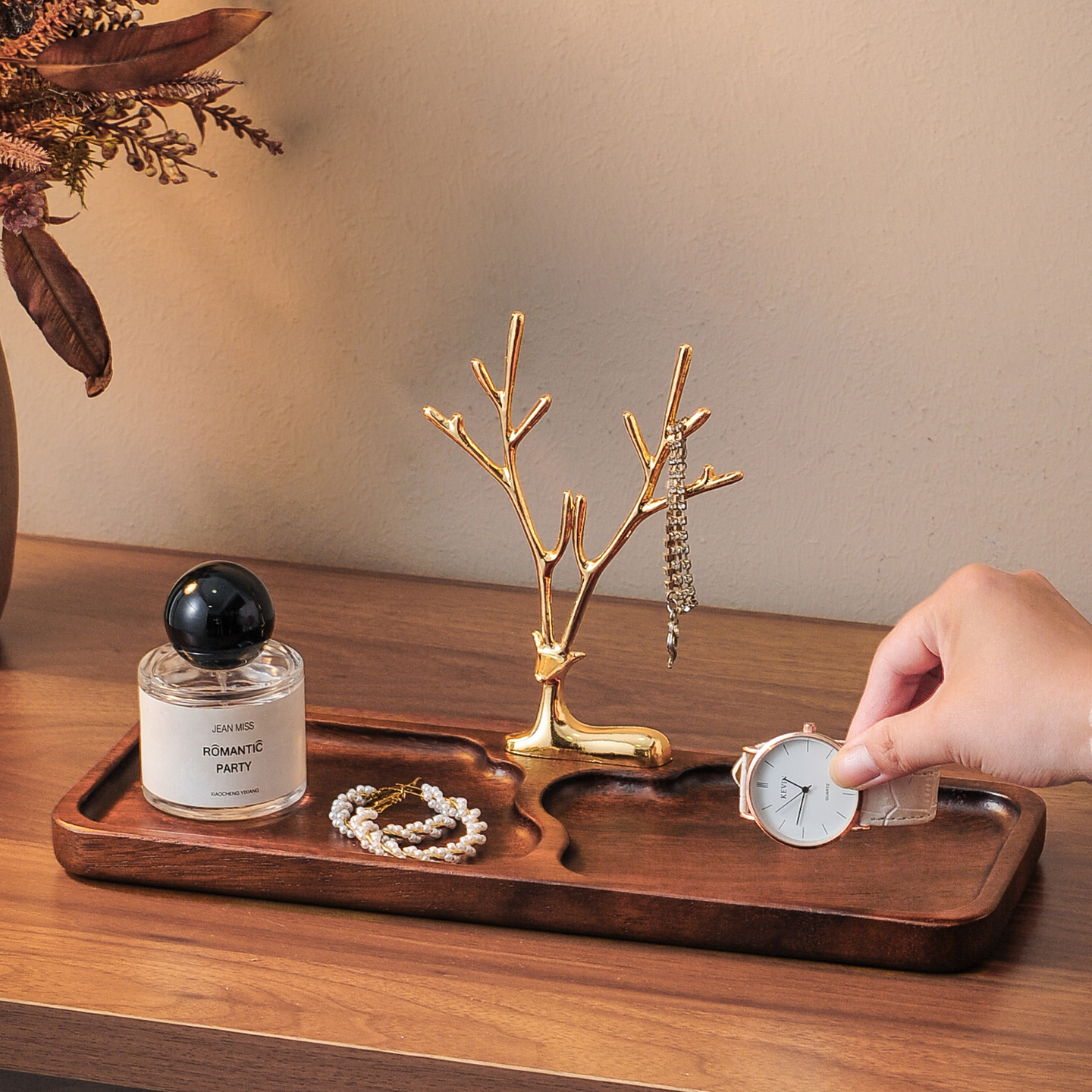 中古风胡桃木实木入户进门玄关钥匙托盘桌面收纳盒摆件鞋柜置物架