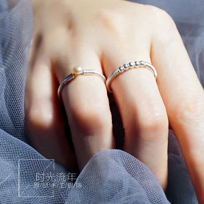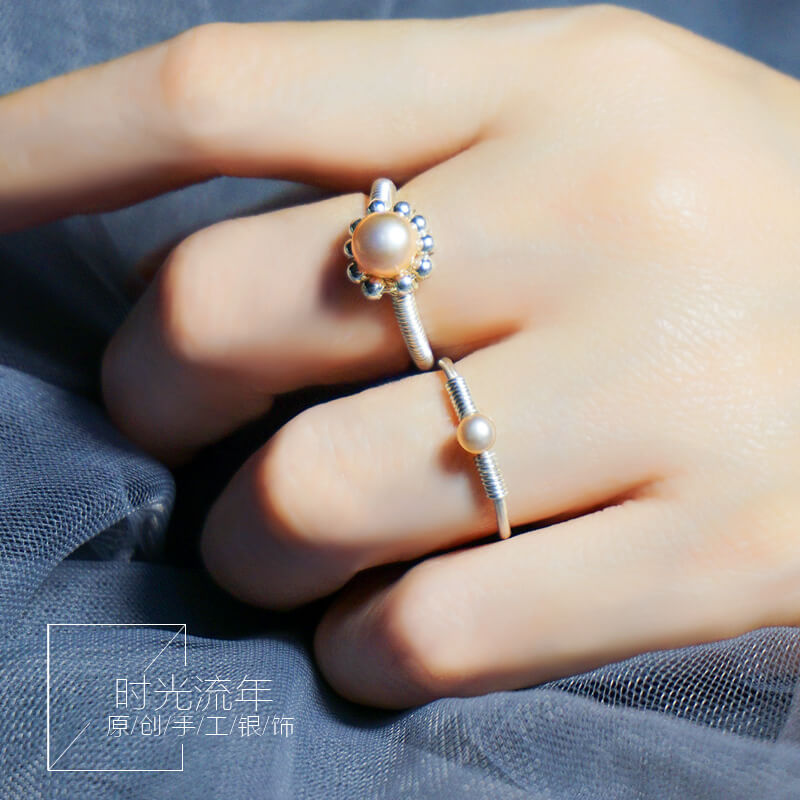 原创手工999足纯银正品珍珠戒指女天然淡水开口食指戒胖手大码号