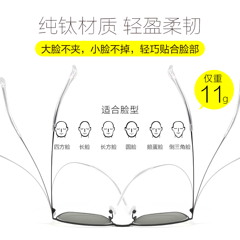 纯钛感光变色太阳镜男潮偏光墨镜防蓝光近视眼镜框女防紫外线辐射