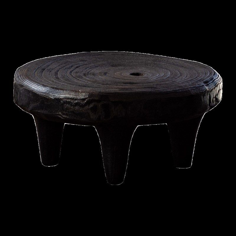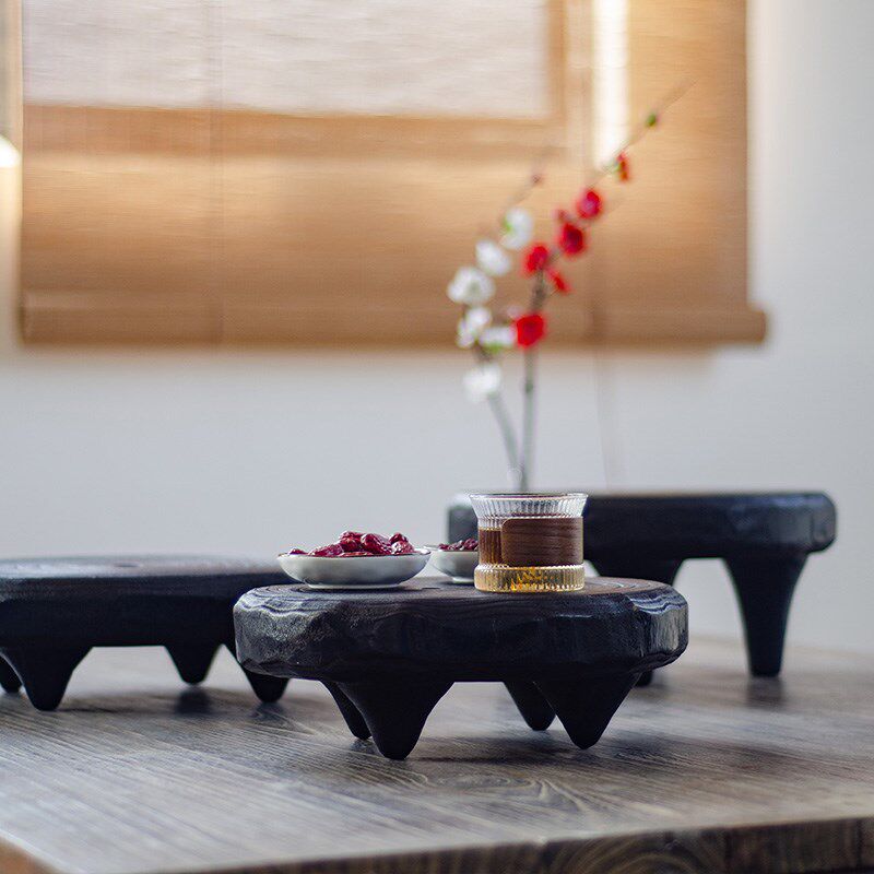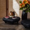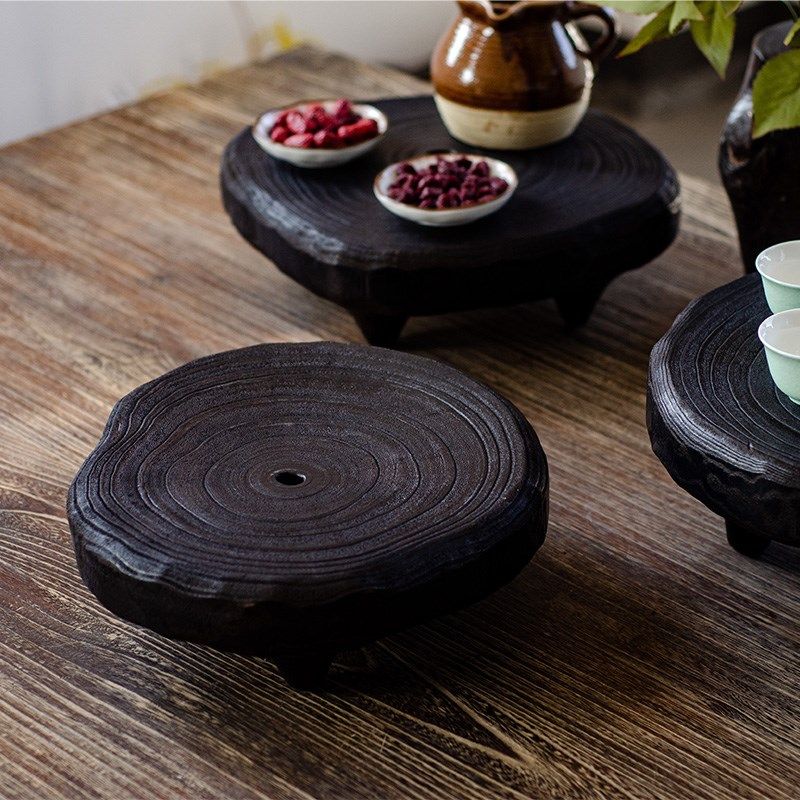 侘寂风茶盘小型圆形黑色矮脚木平盘家用名宿软装实木装饰托盘摆件
