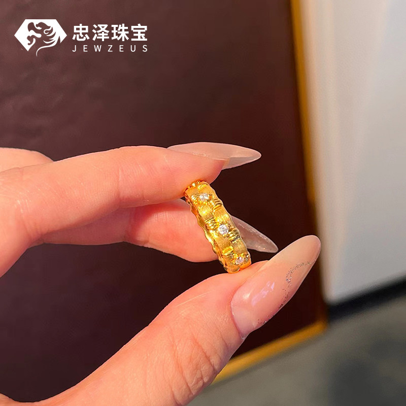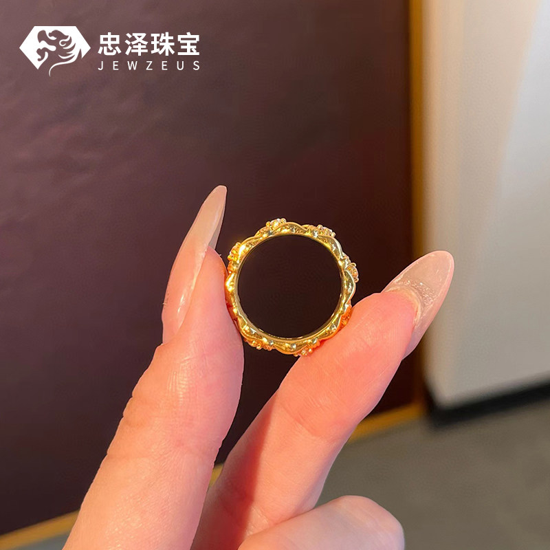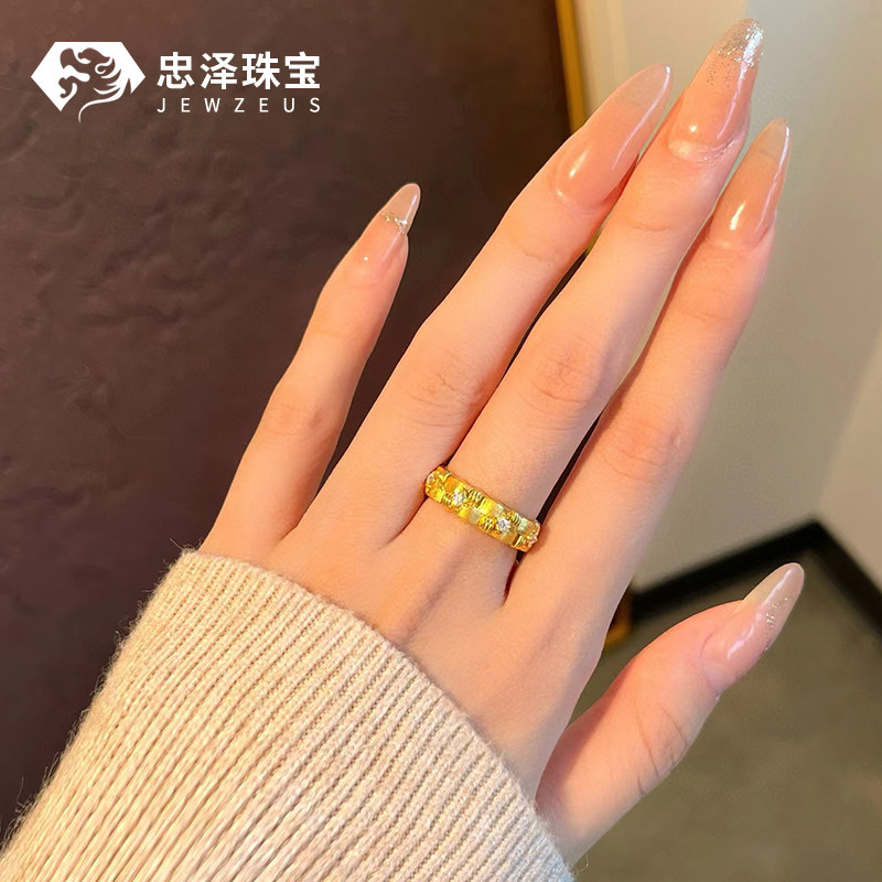 黄金拉丝点钻编织戒指女999足金5D无氢时尚镶钻纯金戒子百搭送礼