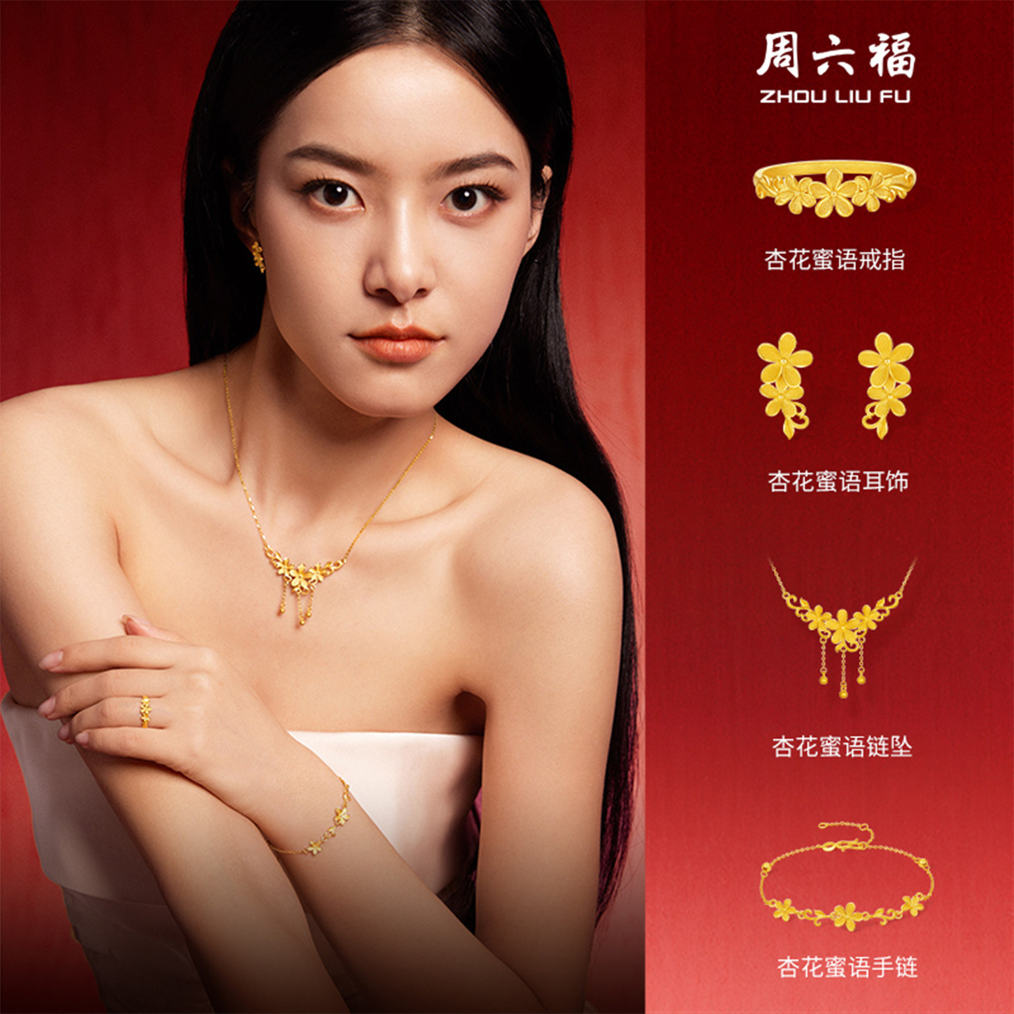 周六福黄金计价足金蜜恋杏花蜜语戒指公主嫁期指南系列圣诞礼物