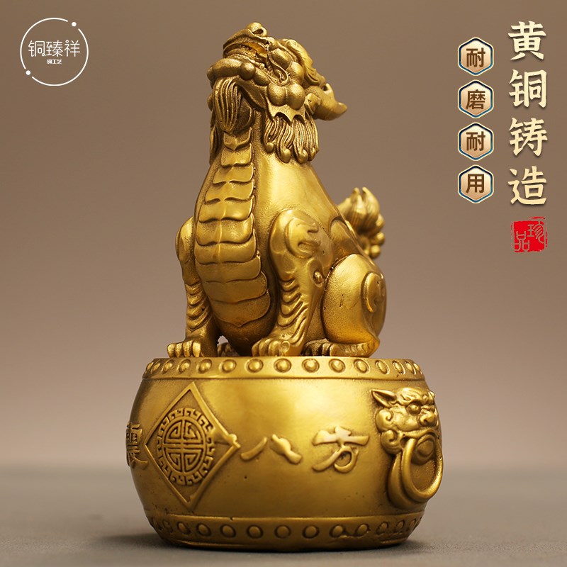 黄铜望天吼朝天吼入门玄关装饰寓意好的摆件高级感小众家居饰品