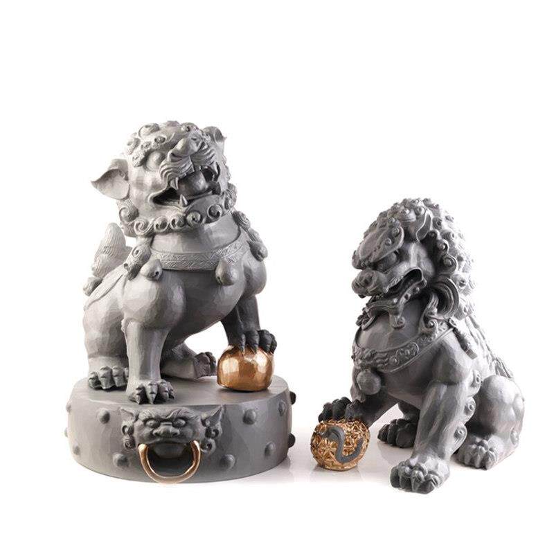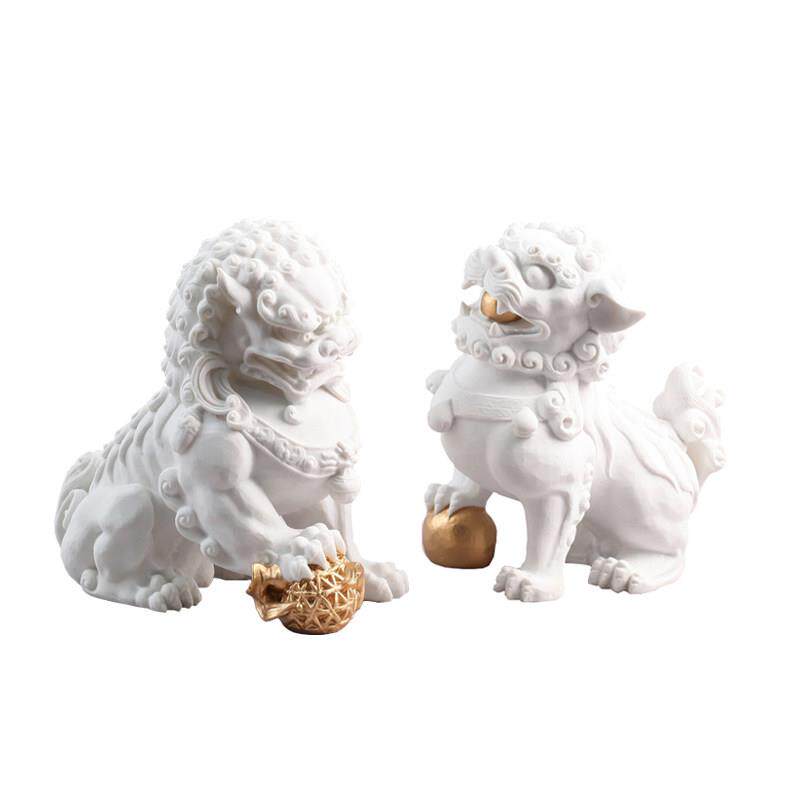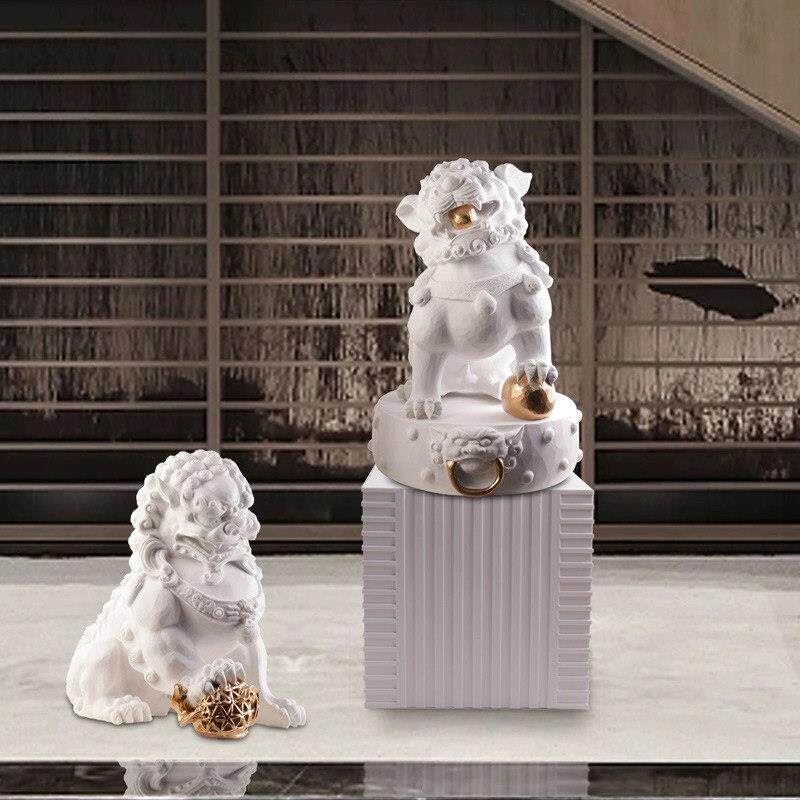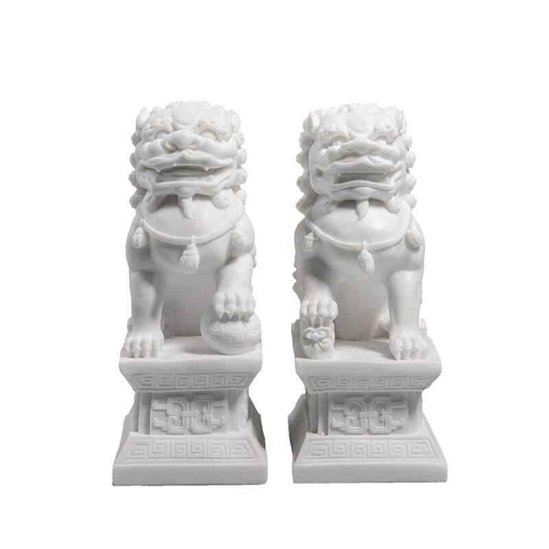 新中式白色石狮子摆件现代样板间别墅客厅家居装饰动物石雕工艺礼