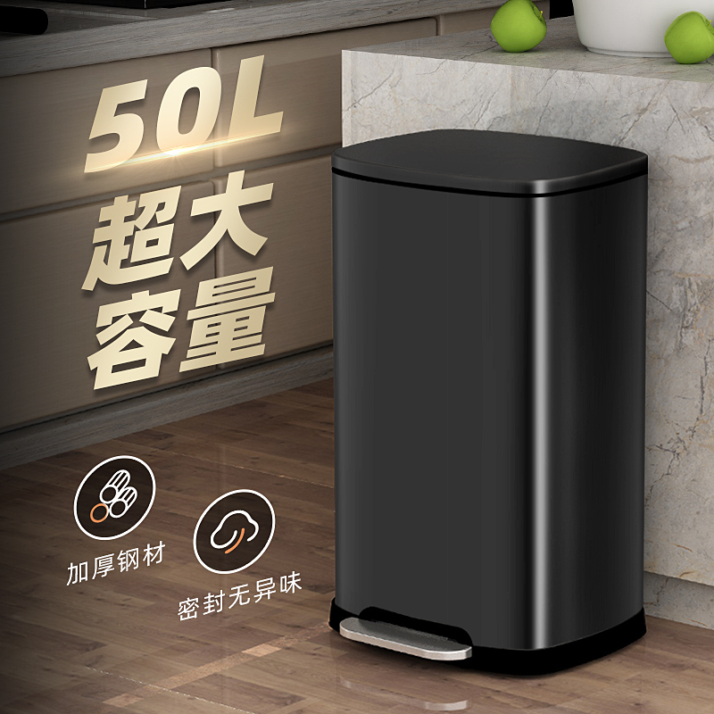 汉世刘家垃圾桶家用厨房客厅不锈钢商用2025新款脚踩带盖大号容量