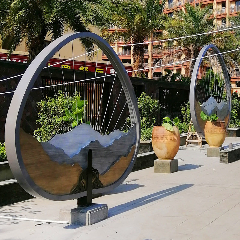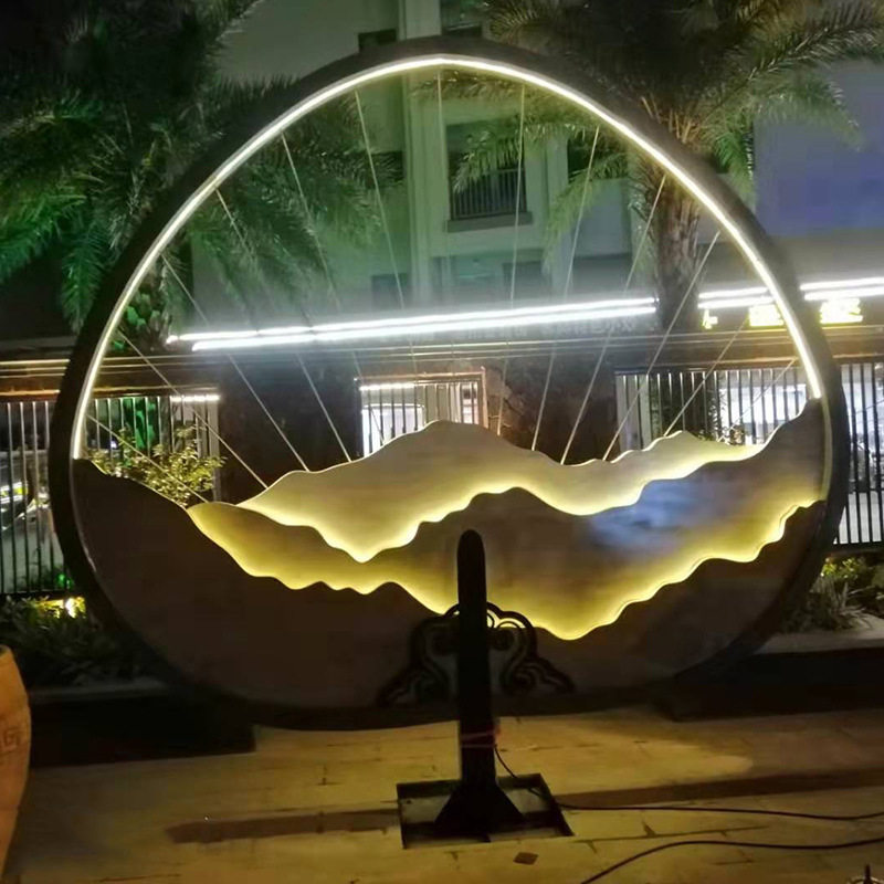 奥园地产旅游小镇网红打卡不锈钢假山雕塑 金属烤漆灯光景观小品