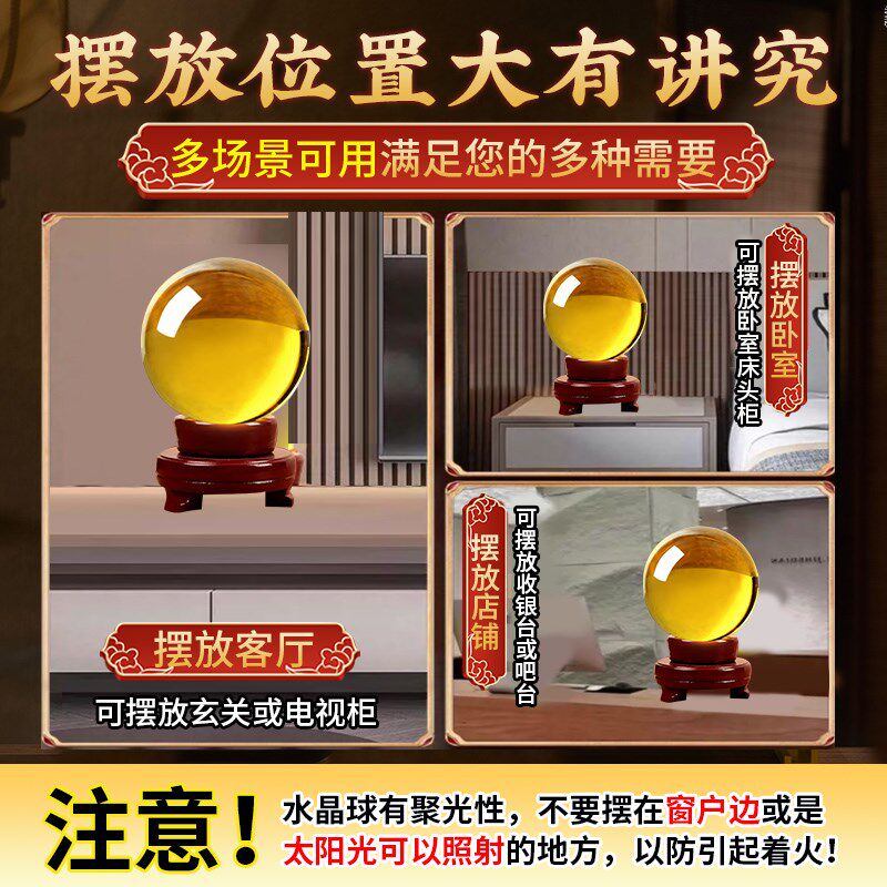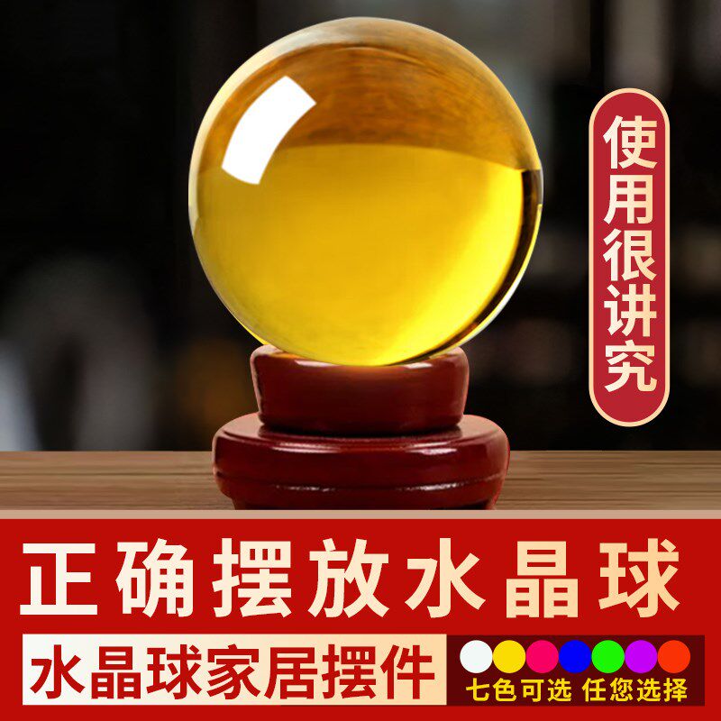 黄色水晶球摆件白紫红透s明圆球玻璃家居装饰品客厅小号开业送礼