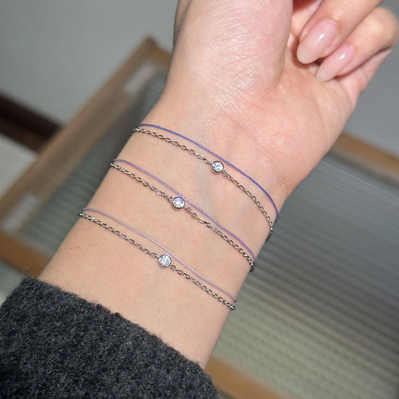 巴黎小红绳紫双绳手链转运紫气东来全链气质编织手绳送925银简约