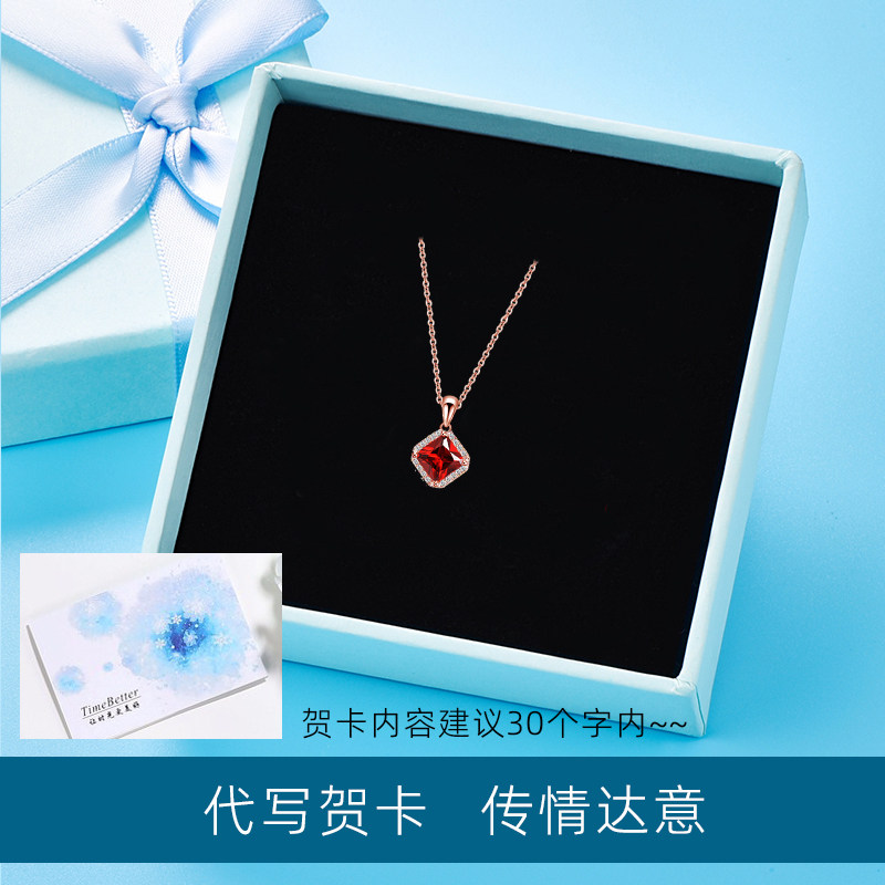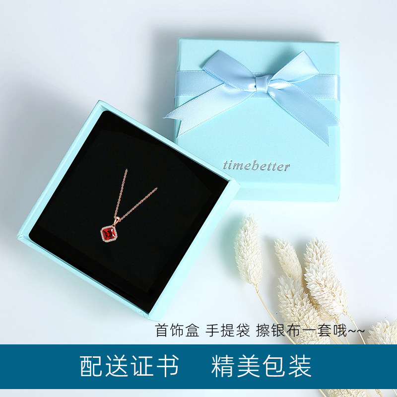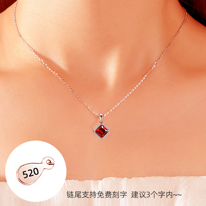 天然石榴石925银项链简约时尚小众方形红色本命年送证书生日礼物