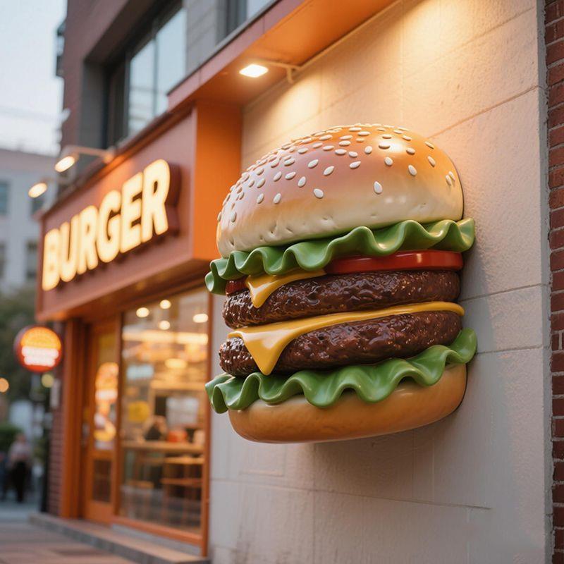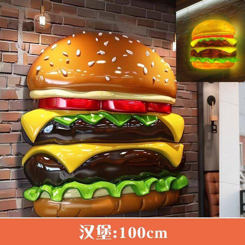 彷真发光汉堡雕塑摆件夜市摆摊车模型创意立体装饰招牌汉堡店门口