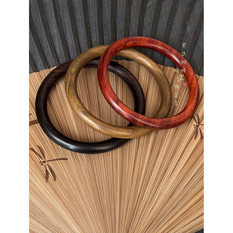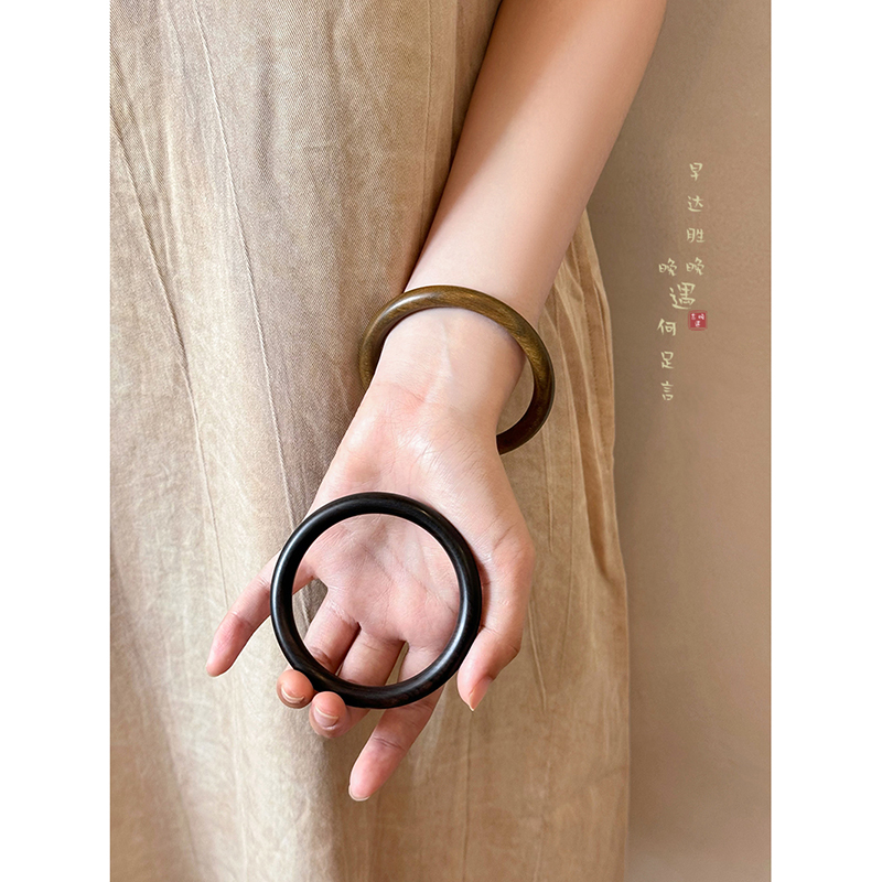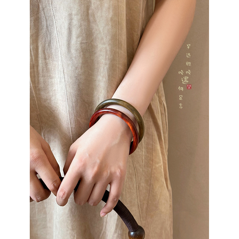 复古绿檀木素圈手镯女新中式国风手饰小众高级感民族风情侣手环男