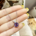绿色莫桑钻2克拉吊坠高透圆形S925纯银镶嵌项链轻奢送女朋友礼物
