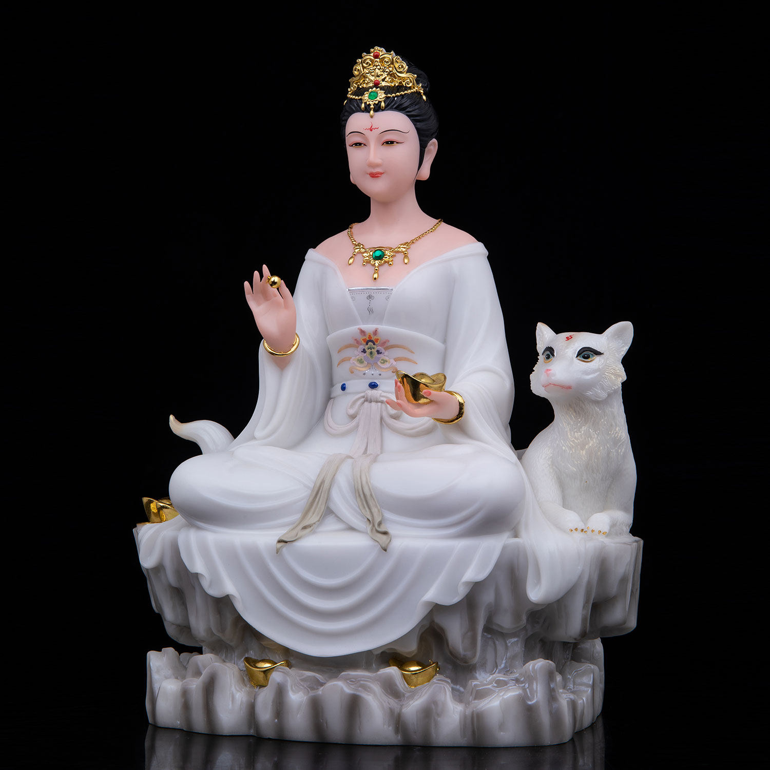 康盛胡家太爷太奶神像汉白玉家用胡公子姑娘真身九尾狐娘娘摆件
