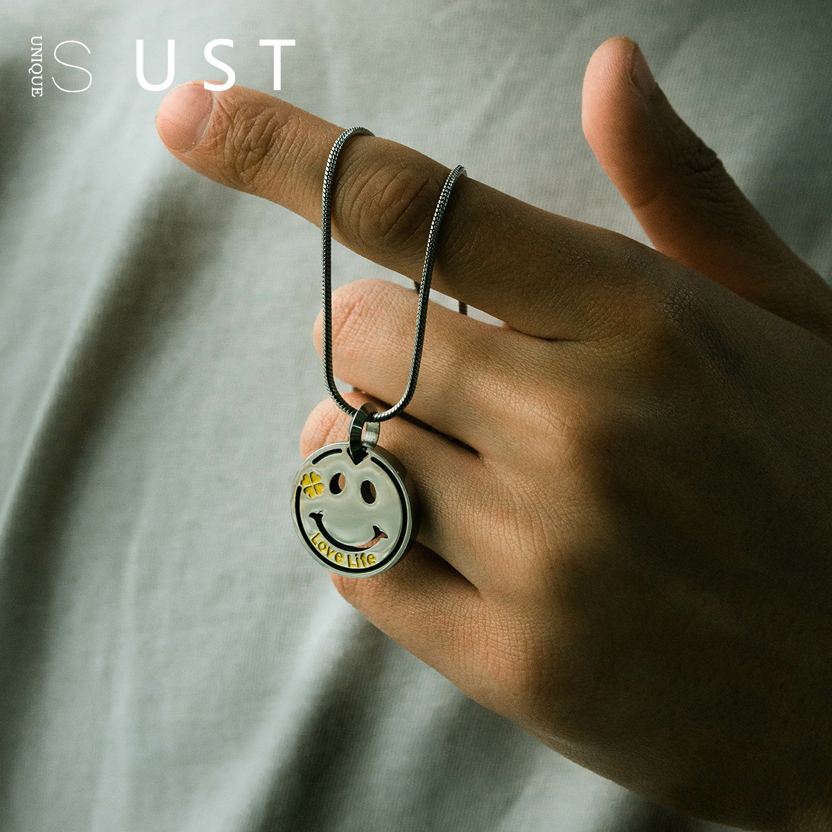 潮牌嘻哈卡通笑脸吊坠项链ins男女情侣简约个性酷实心钛钢毛衣链