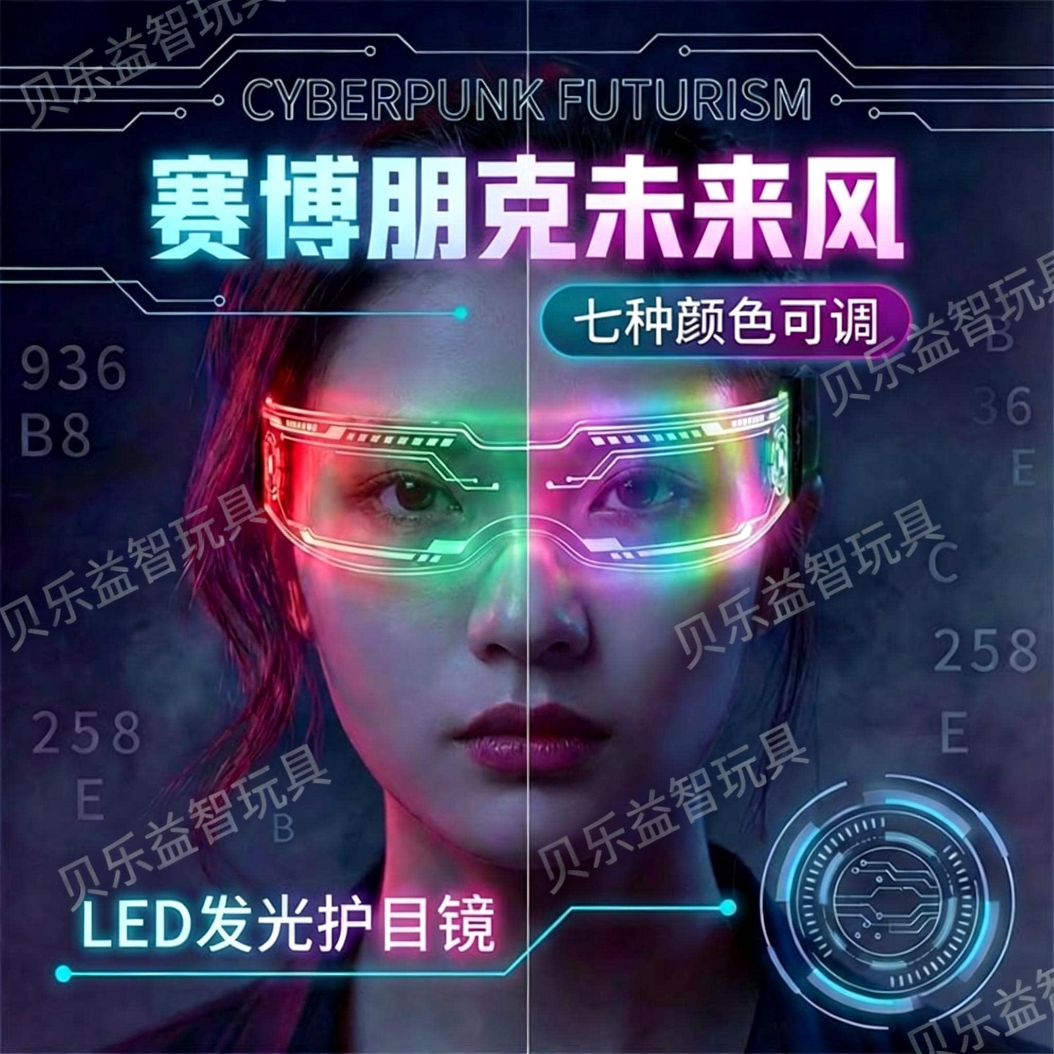 赛博朋克风LED发光眼镜网红蹦迪未来科技感酒吧演唱会音乐节科幻