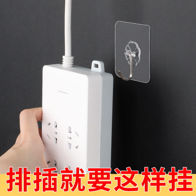 排插挂钩墙上贴插排收纳置物架免打孔插I线板排插插座壁挂收纳整