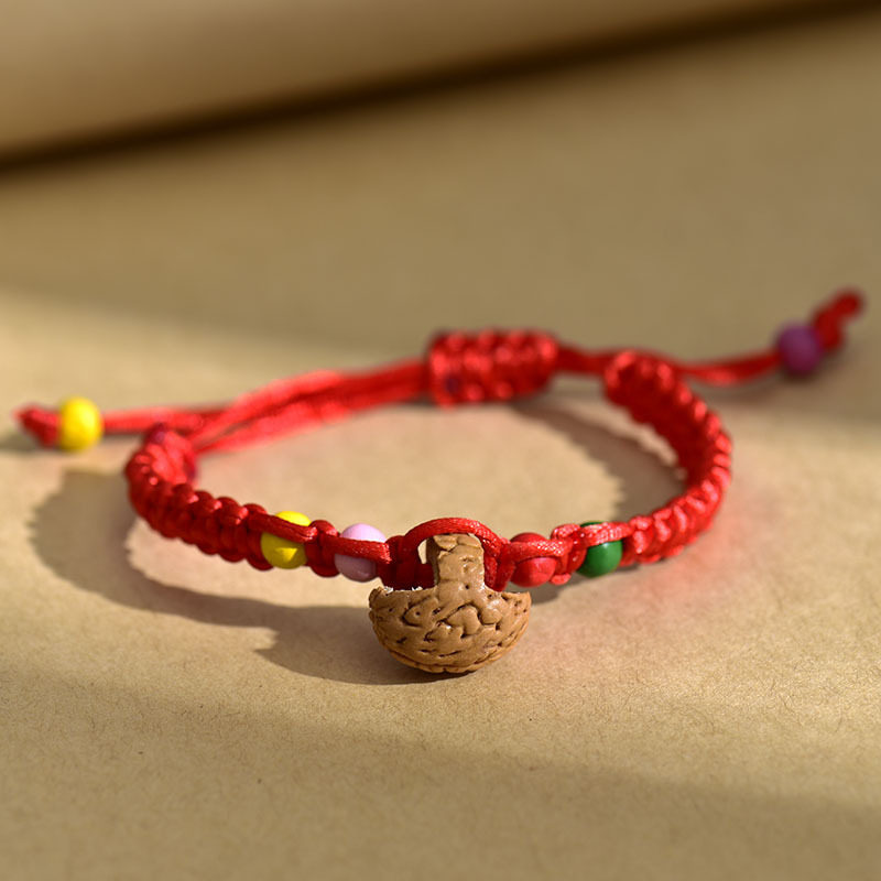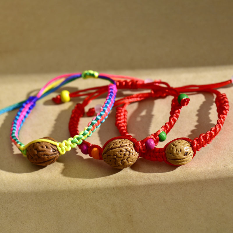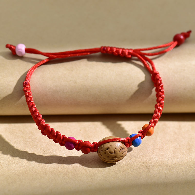 手工编制端午节凤尾桃核红绳手链线五月儿童五彩绳手环饰品