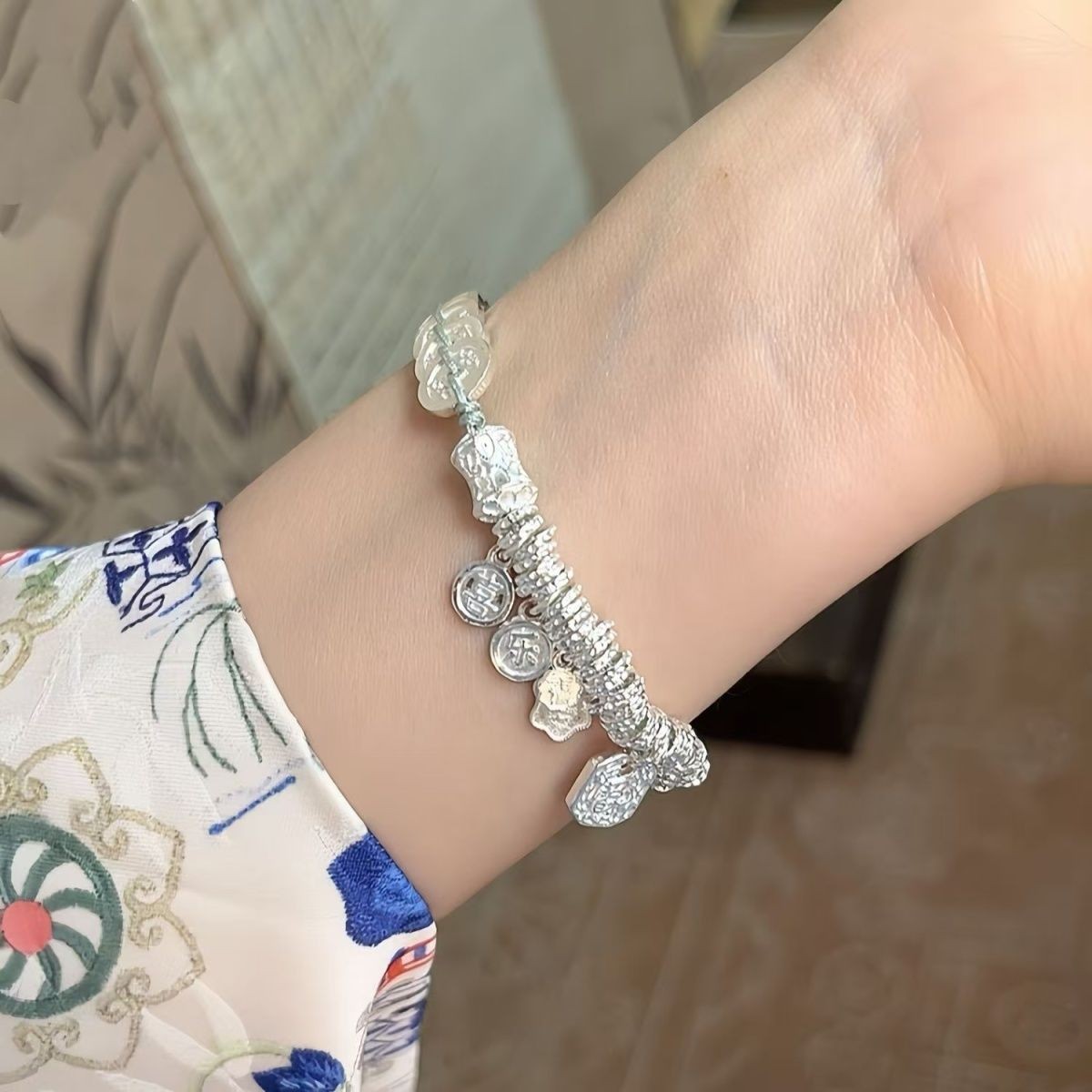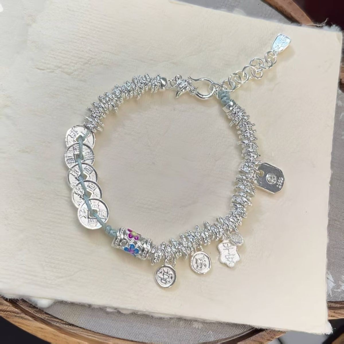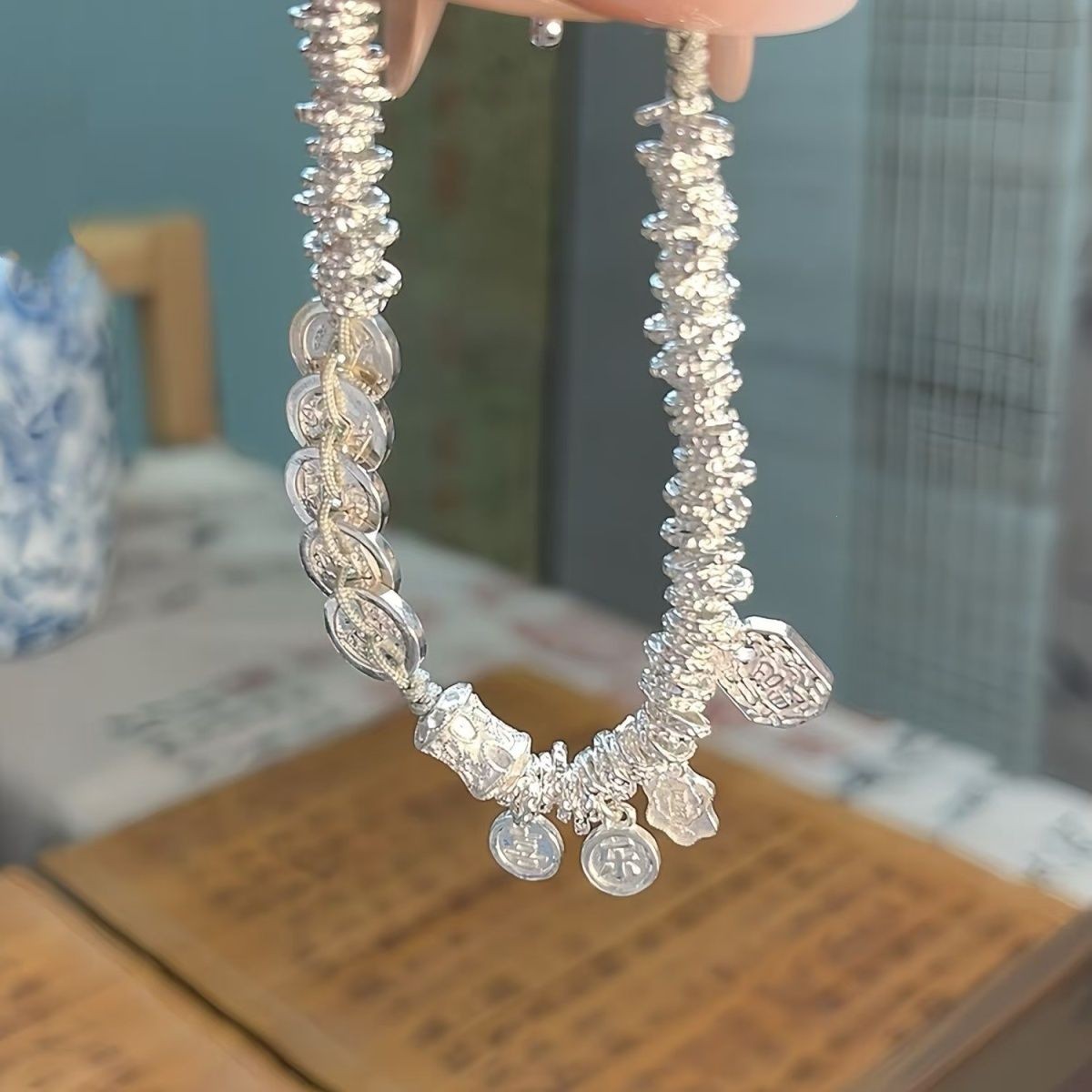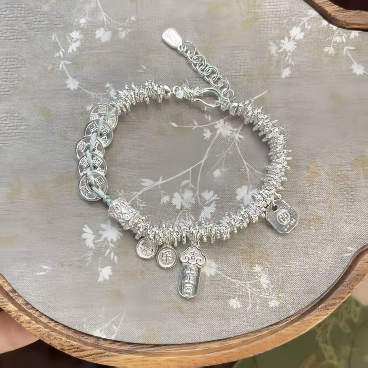 足银999五帝钱盘缠纯银手链平安喜乐手串新中式国风礼物