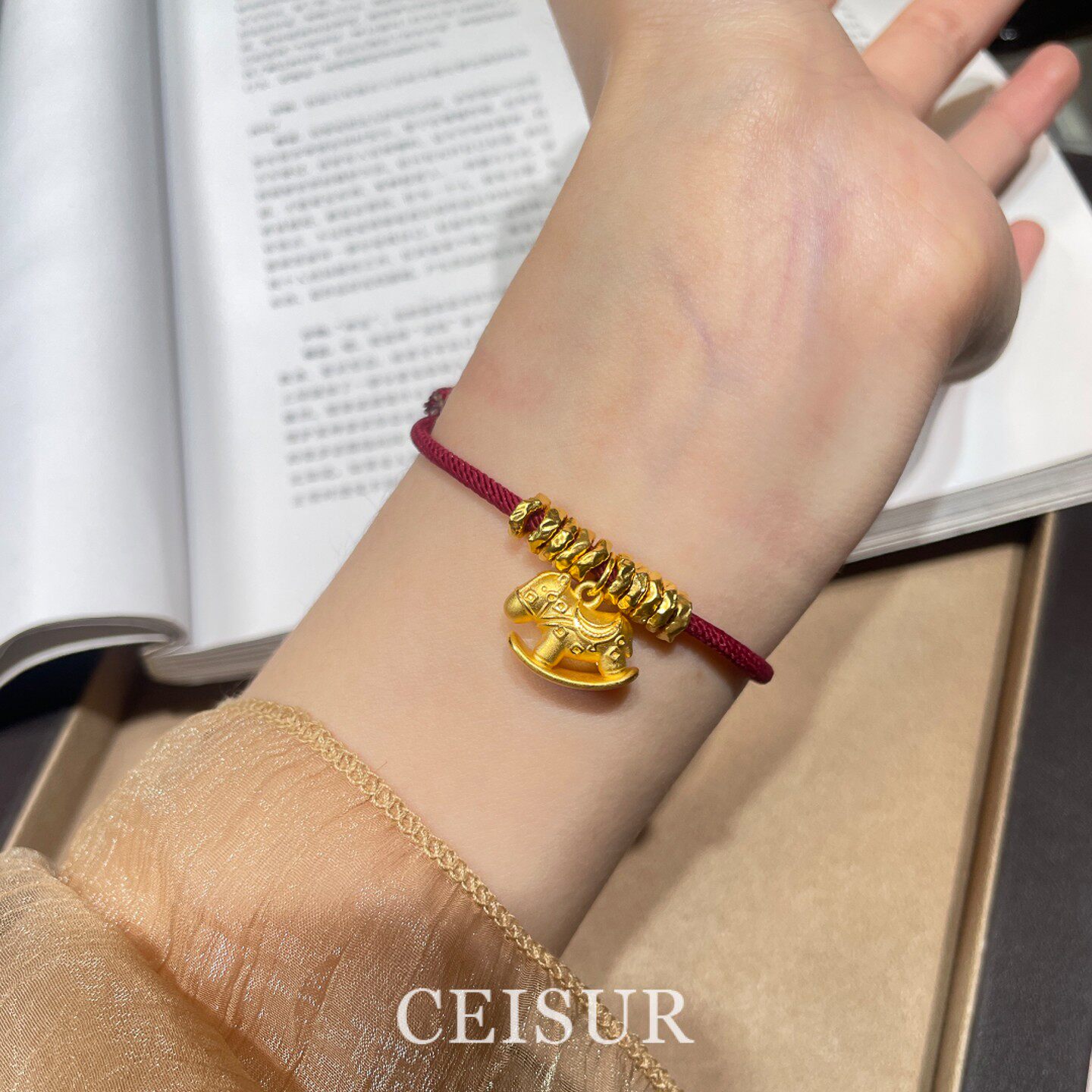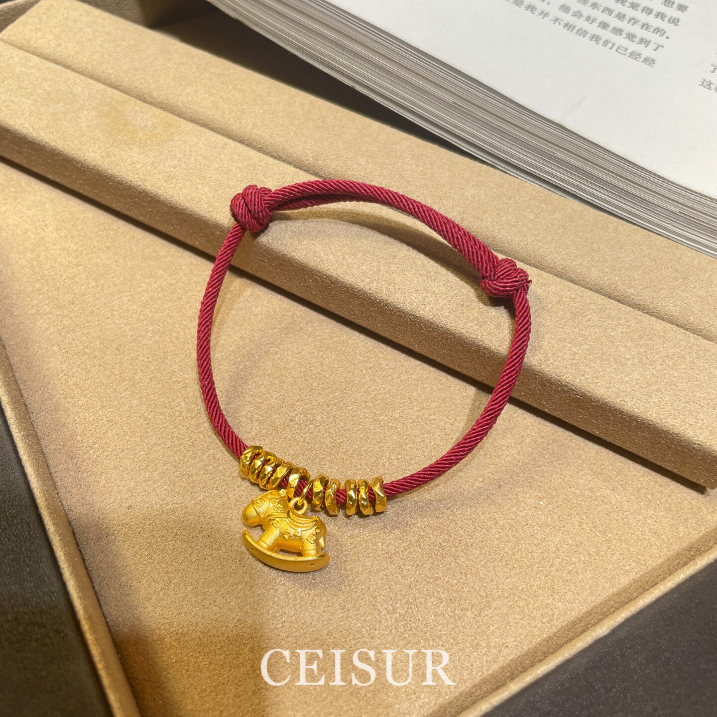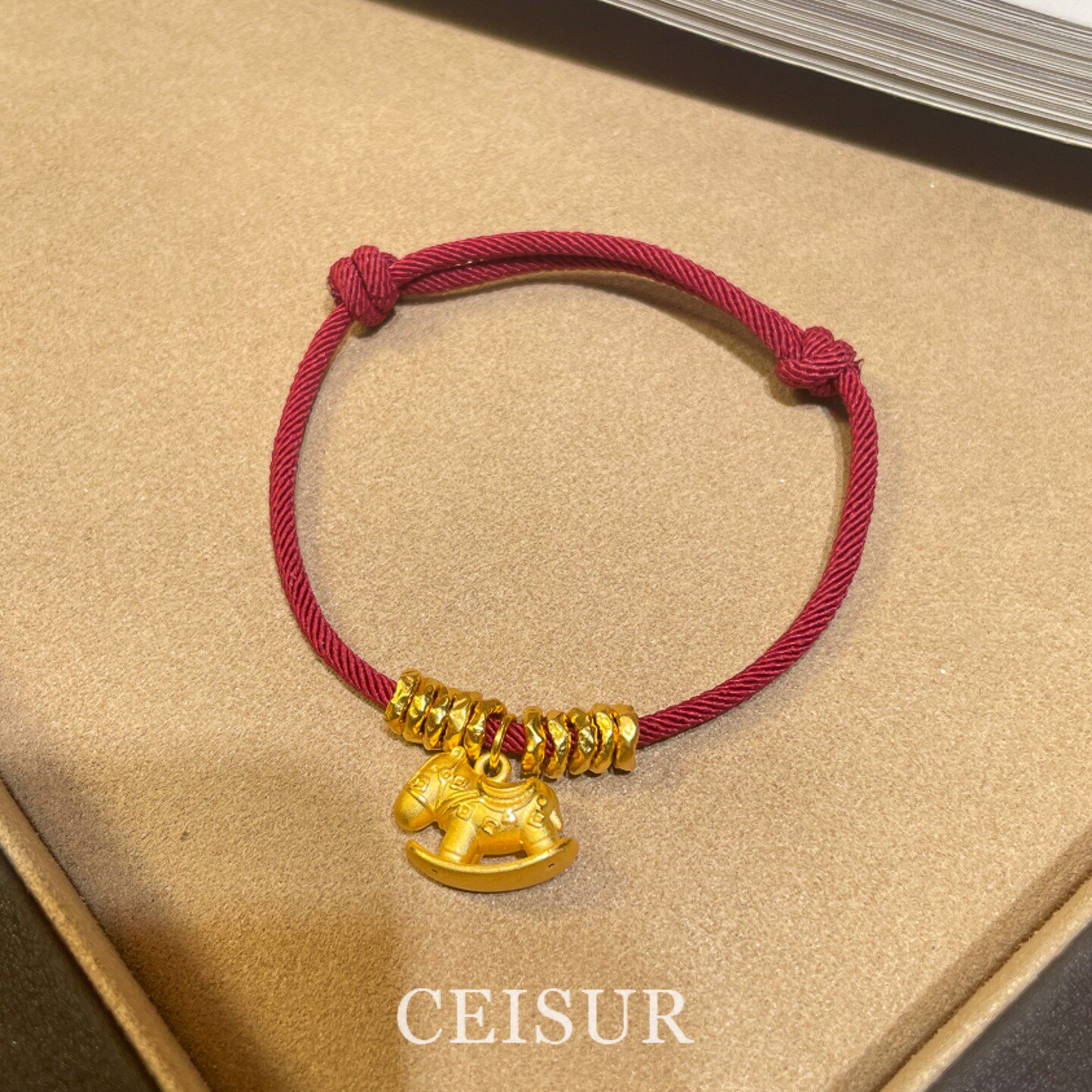 马上有钱小马红色粗编绳手链女精致清冷感2025新款手饰轻奢高级感