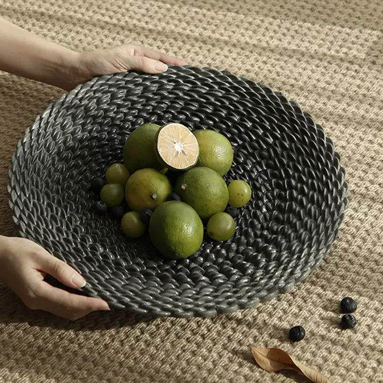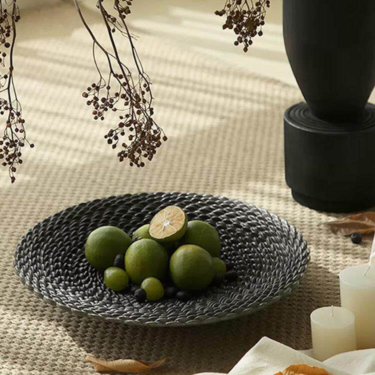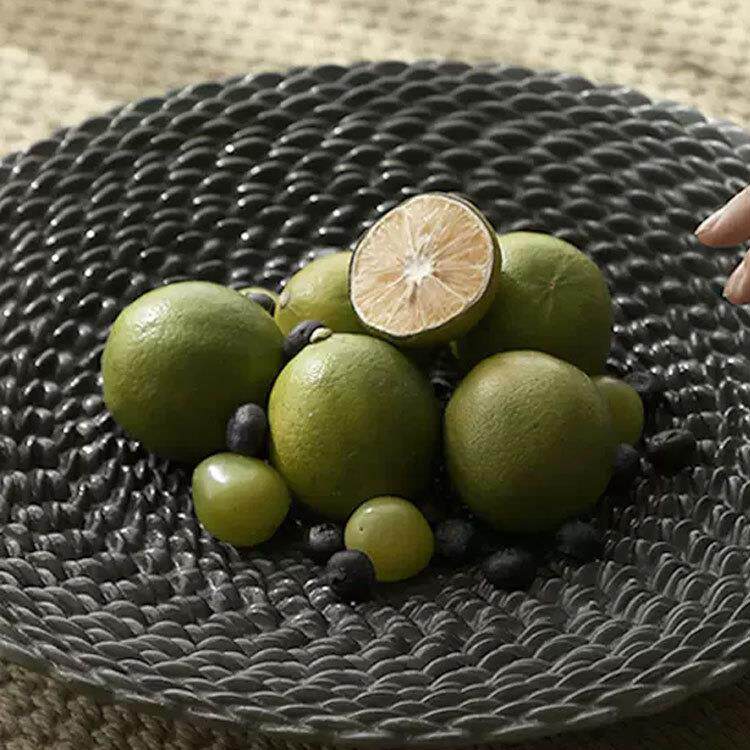 法式中古黑色编织果盘样板间酒店民宿家居茶几桌面装饰品艺术摆件