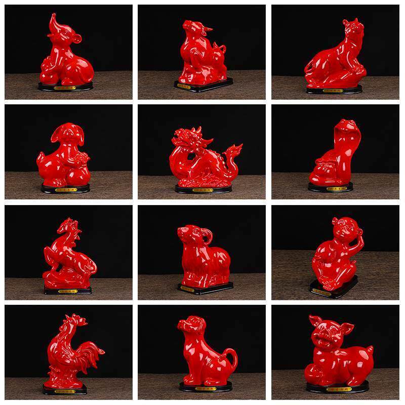 陶瓷红色生肖饰品为家庭风水全套狗,鼠,牛,兔,龙,蛇,马,羊