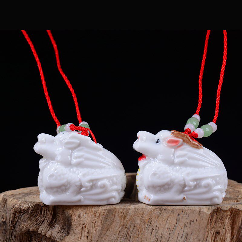 车内创意工艺品狗陶瓷器白色鼠羊猪装饰品挂件儿童羊十二生肖摆件