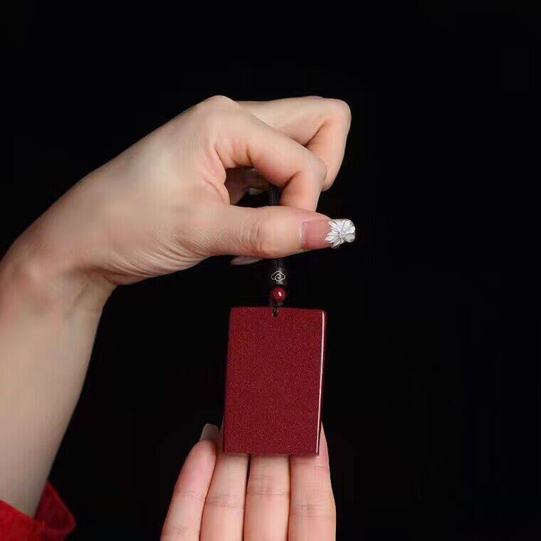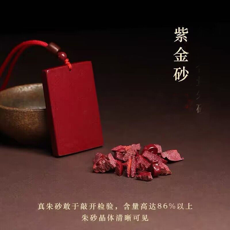 满星光朱砂无事牌吊坠本命年红色项链紫金砂光面挂件男女款礼物
