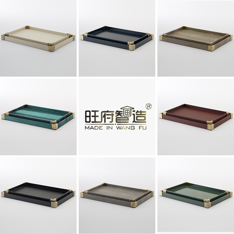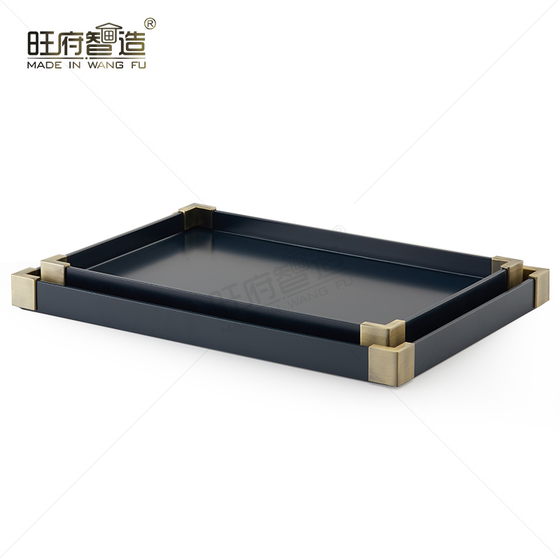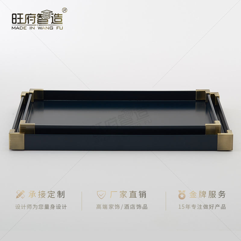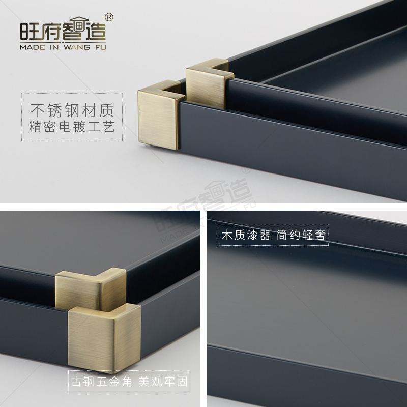 高端中式简约轻奢样板房间酒店创意家居装饰摆件茶几收纳古铜托盘