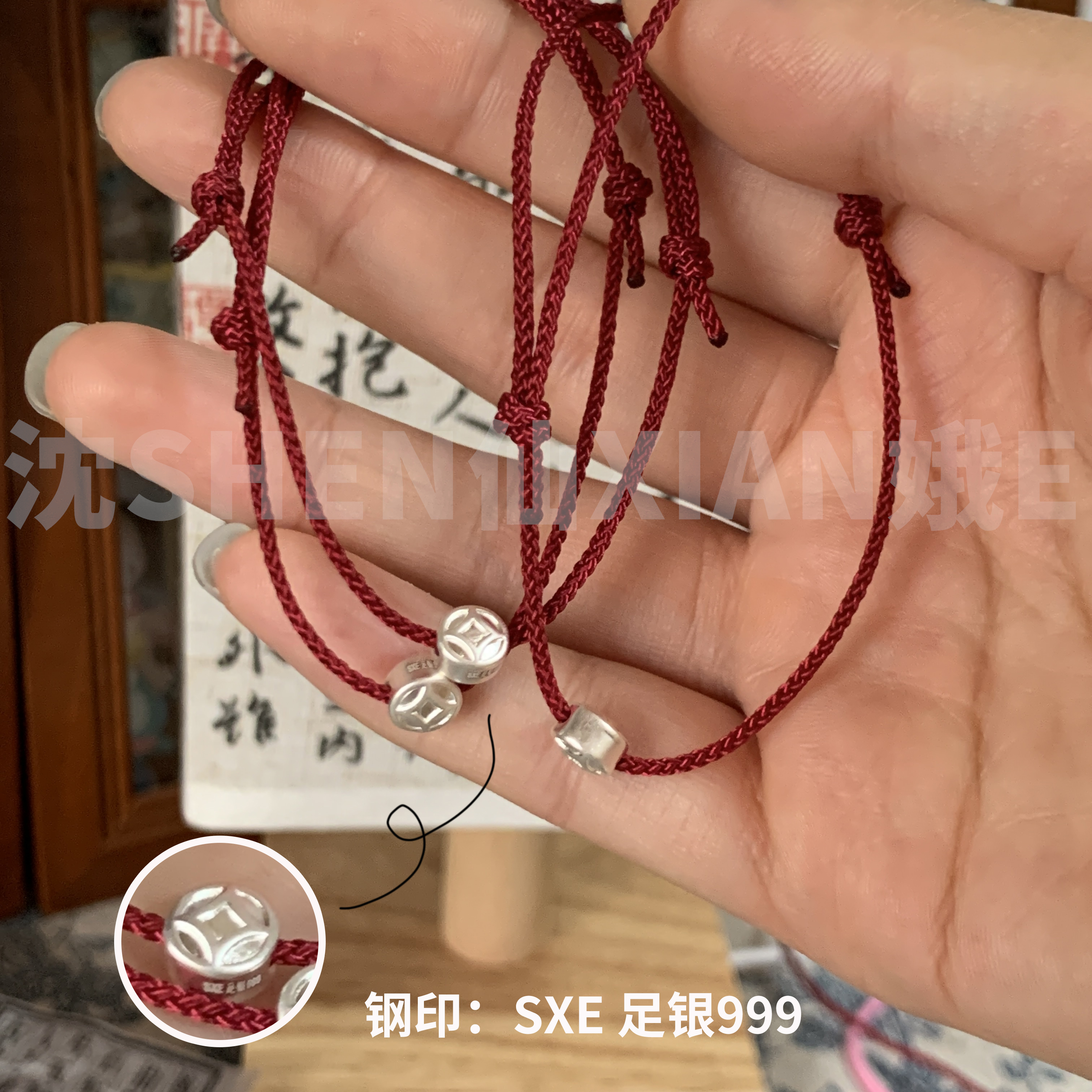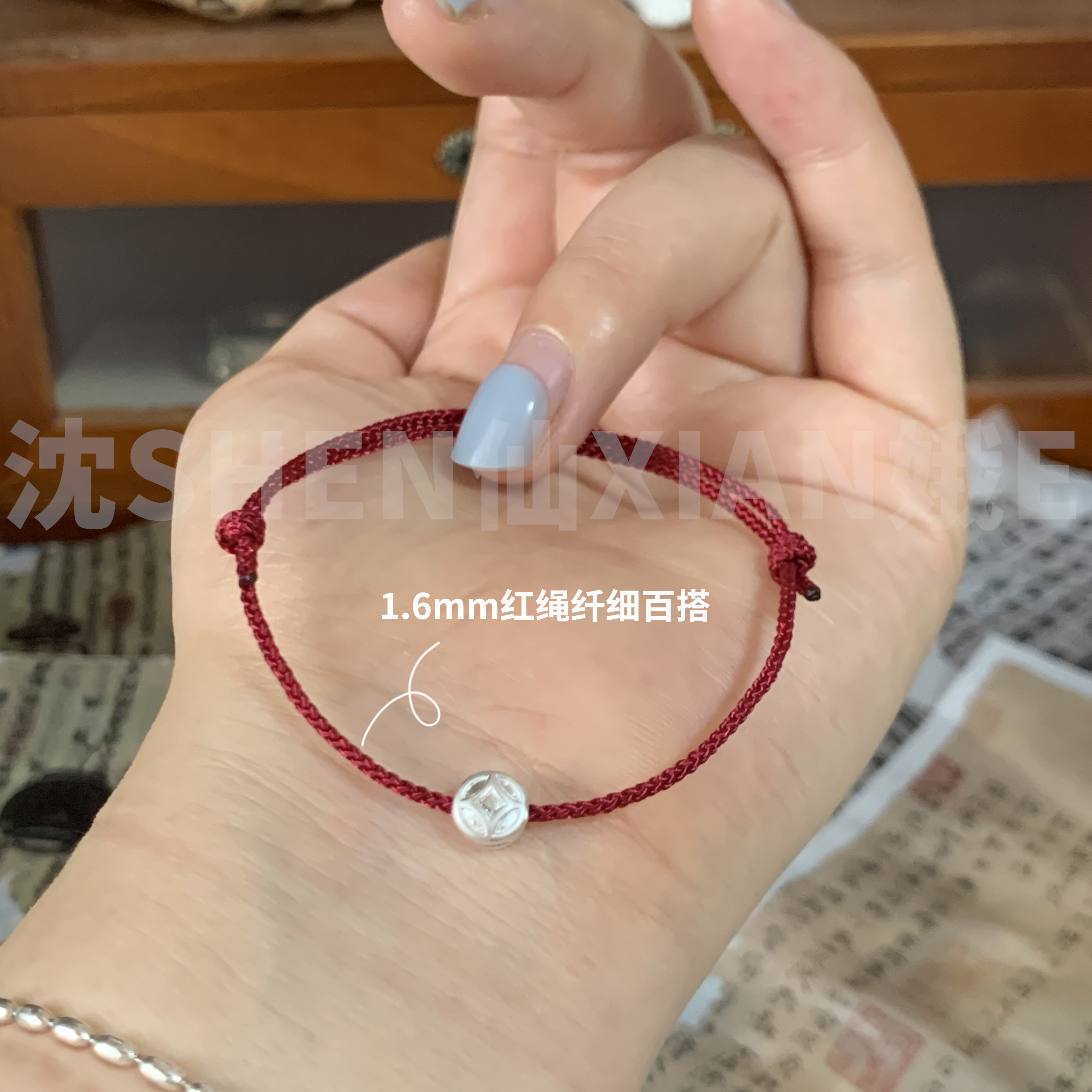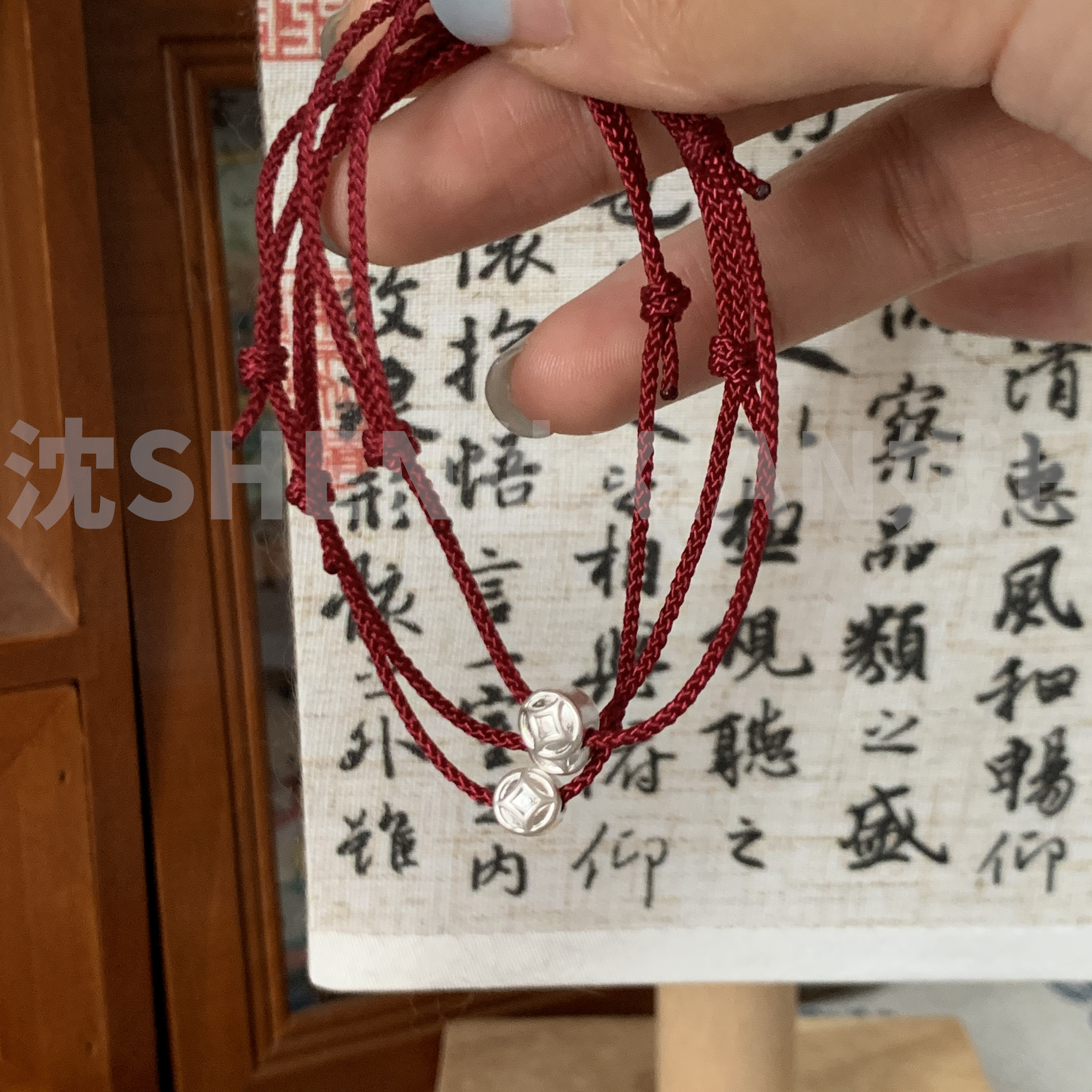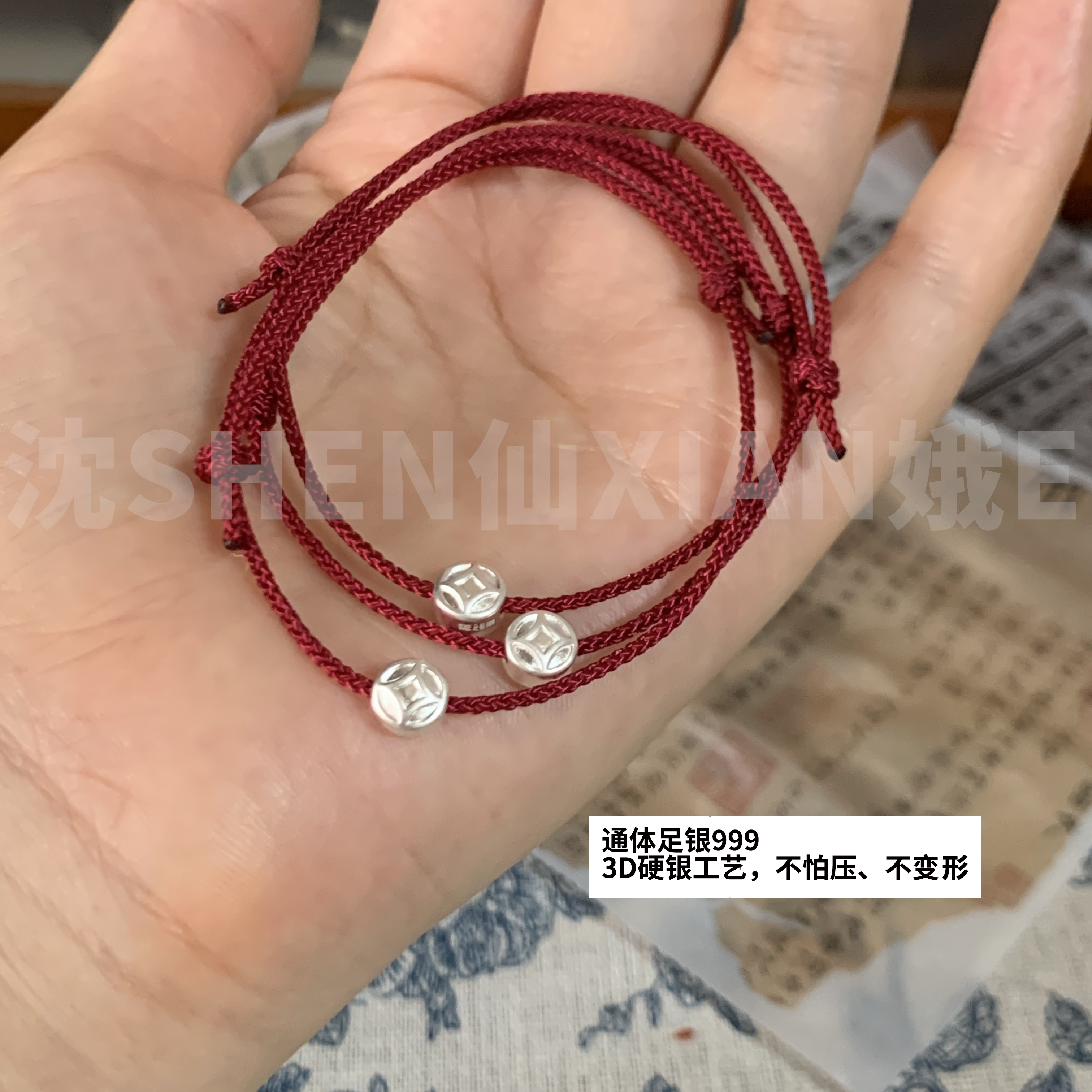 足银999小铜钱红绳手链纯银编织极细情侣款手绳送女朋友生日礼物