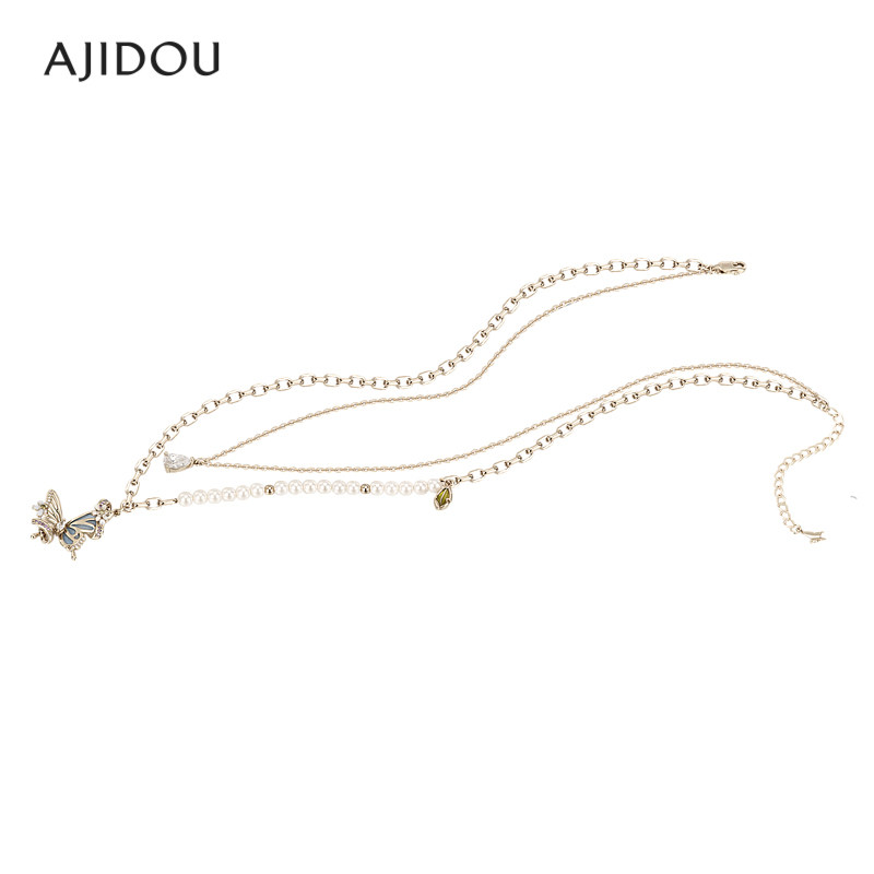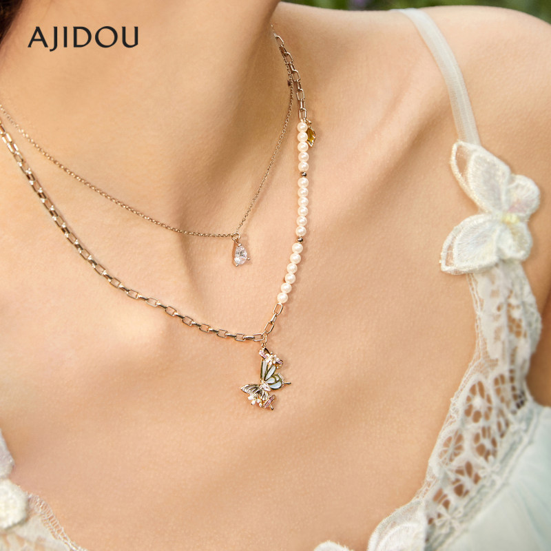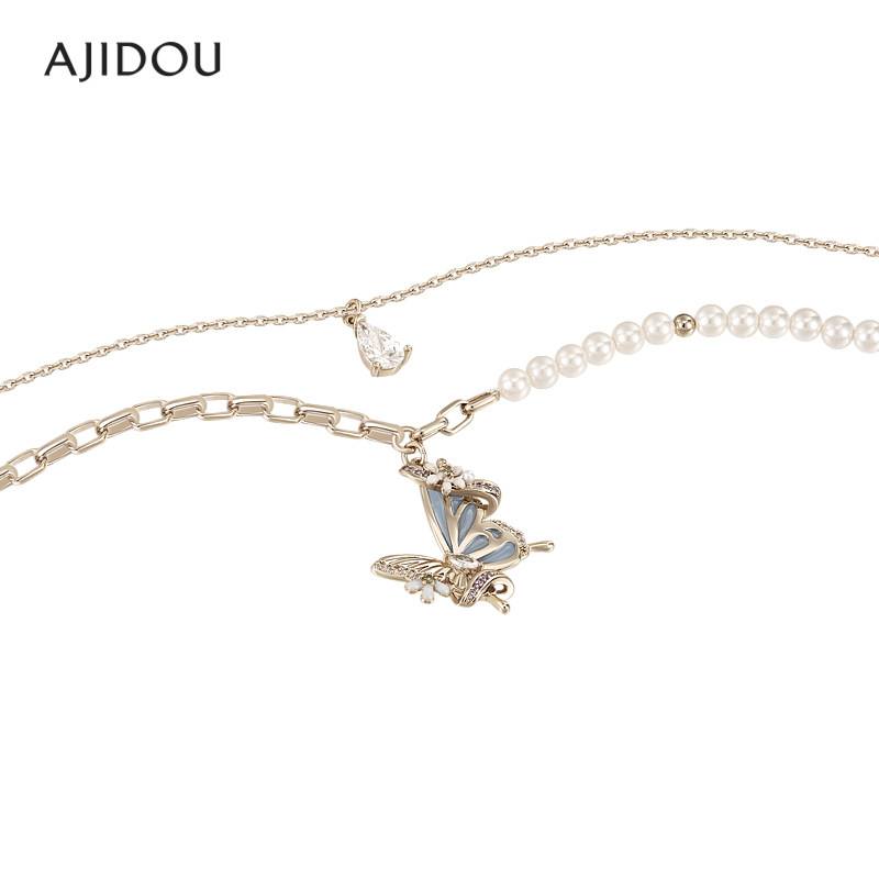AJIDOU阿吉豆项链女珍珠项链轻奢小众精致双层叠戴珍珠颈链锁骨链