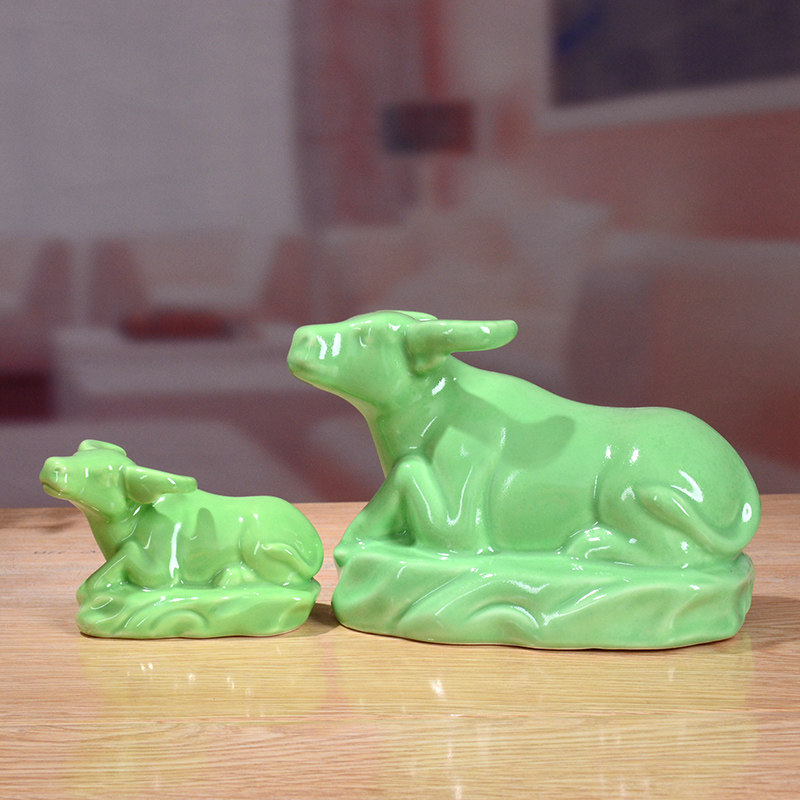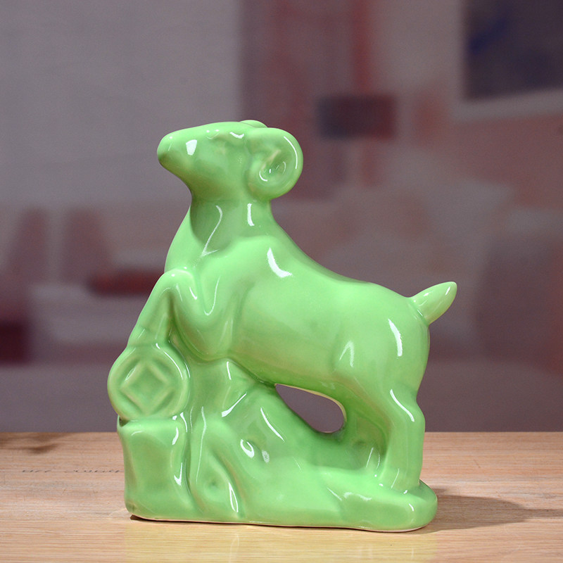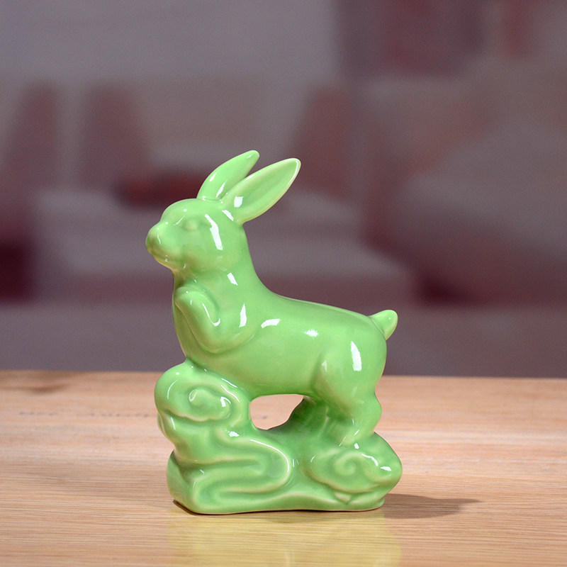 绿色大小号陶瓷老鼠牛招财十二生肖兔龙蛇马风水羊狗猪猴鸡虎摆件