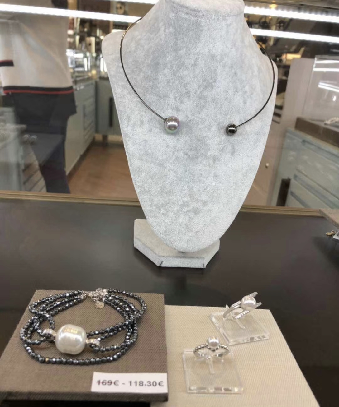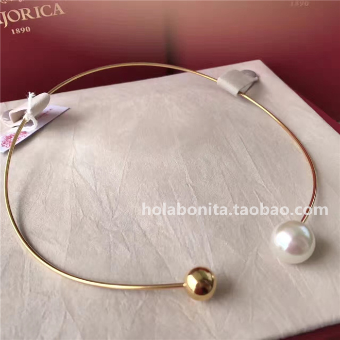 西班牙马略卡14mm极光澳白色珍珠金属球气质CHOKER项圈项链手镯