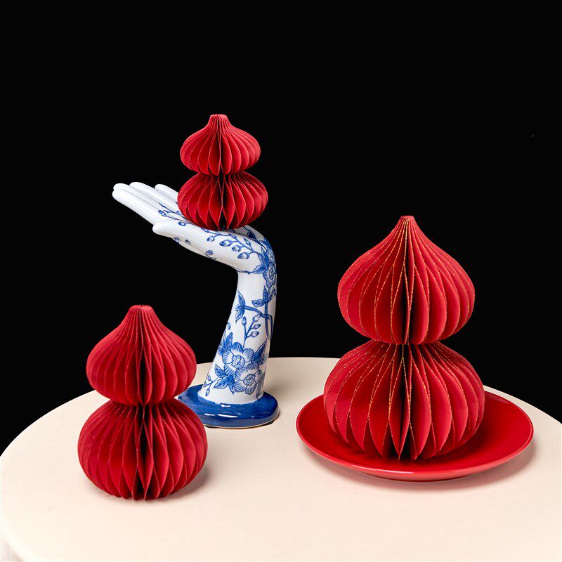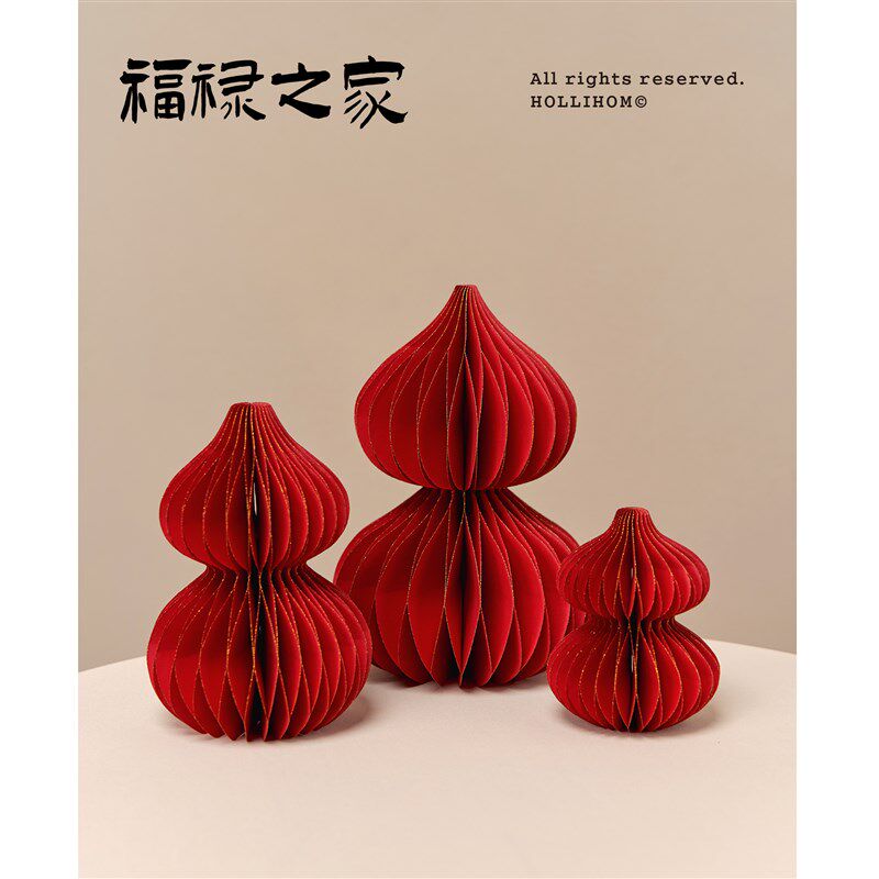 逅里Hollihom 洒金版红色葫芦摆件 乔迁之喜新家装饰酒柜玄关布置