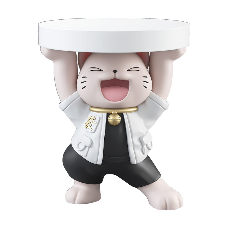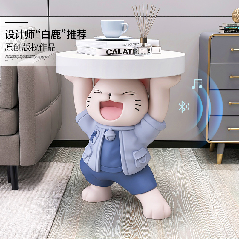 多功能大型落地发财猫卡通摆件客厅玻璃钢K装饰品小茶几卧室床头